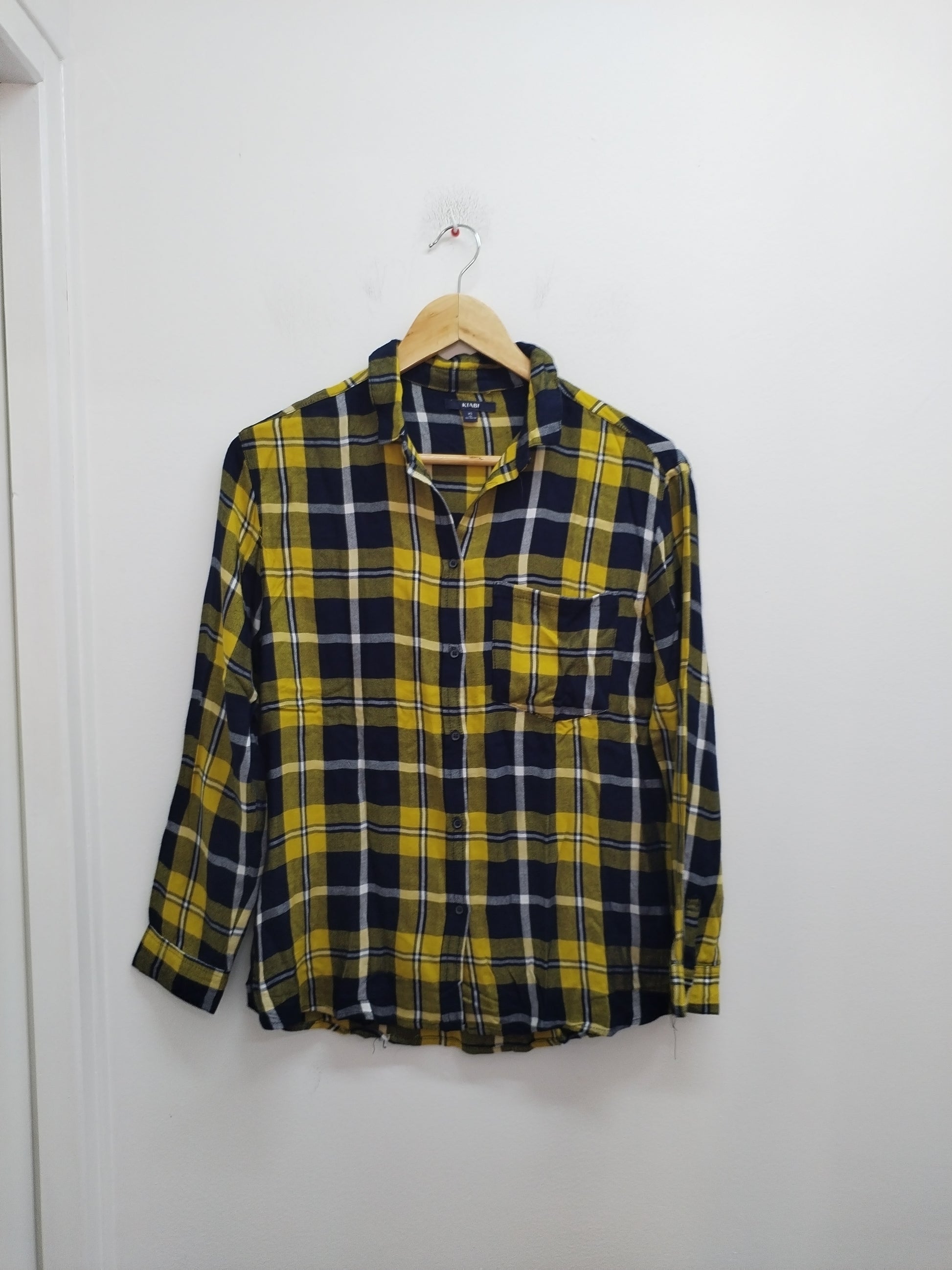 Chemise Kiabi jaune et marine à carreaux Taille 14 Ans