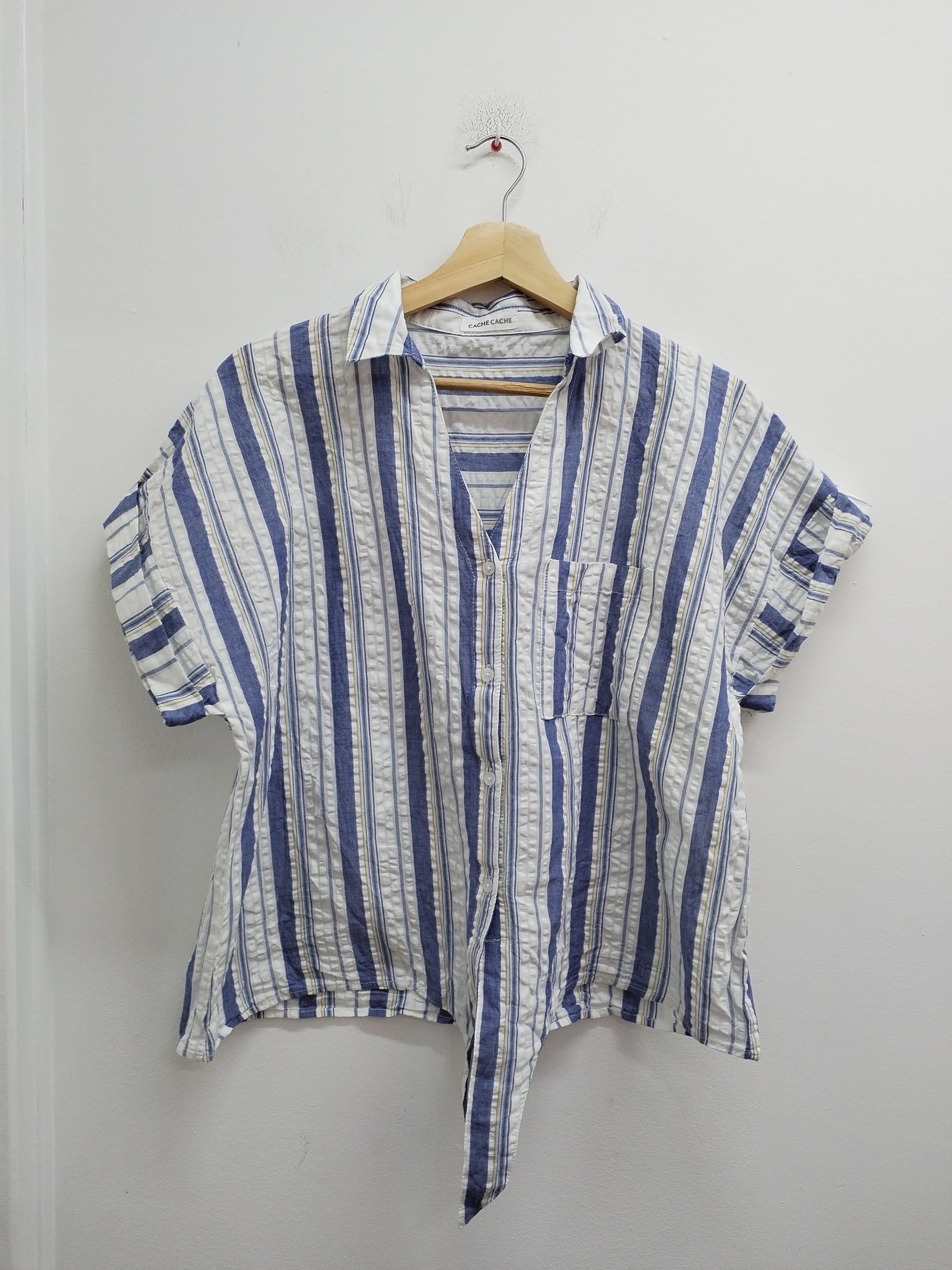 Chemise manches courtes à nouer Cache-Cache blanche rayée Taille XL