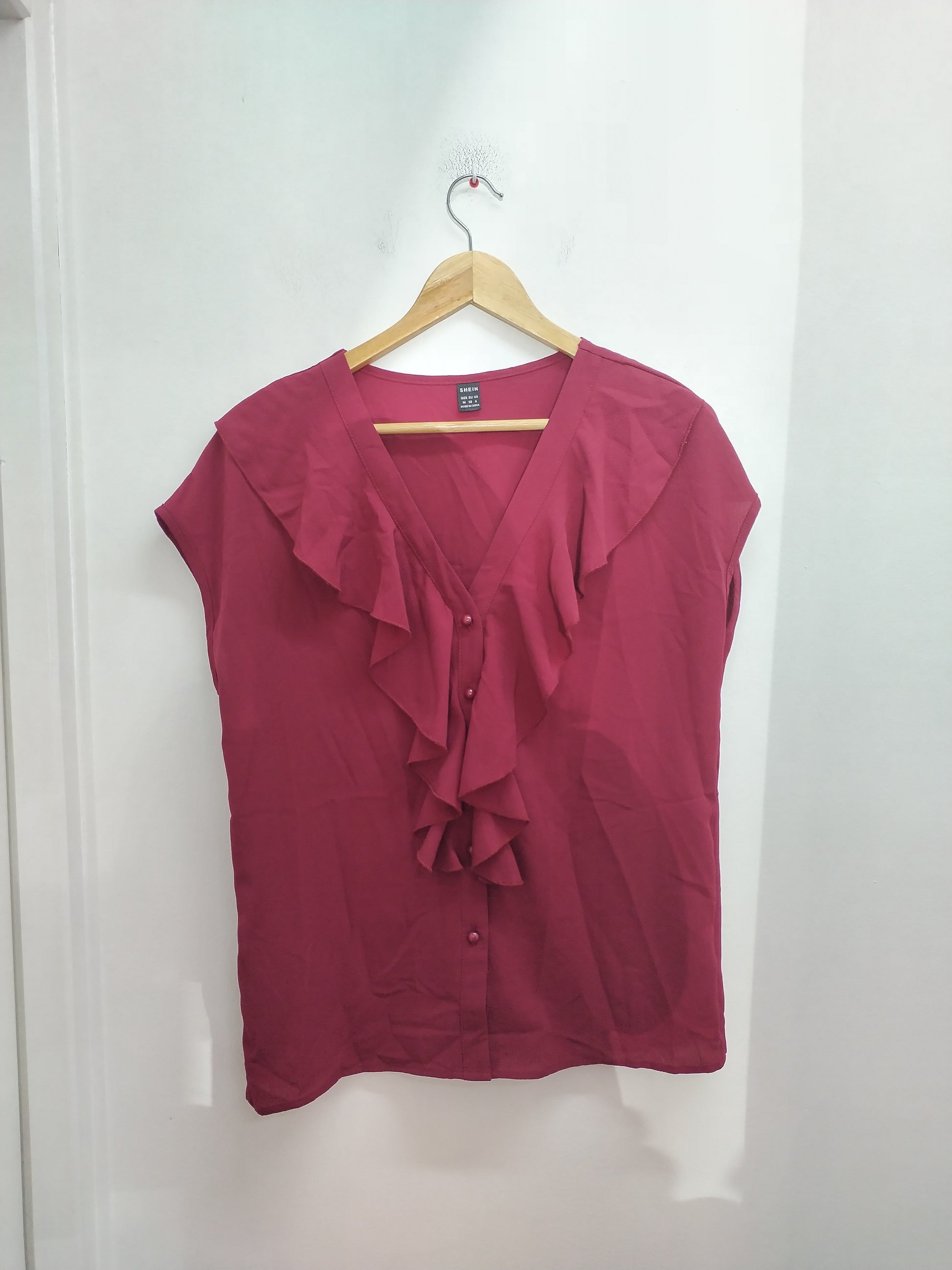 Chemsie manches courtes Shein bordeaux avec volants Taille M