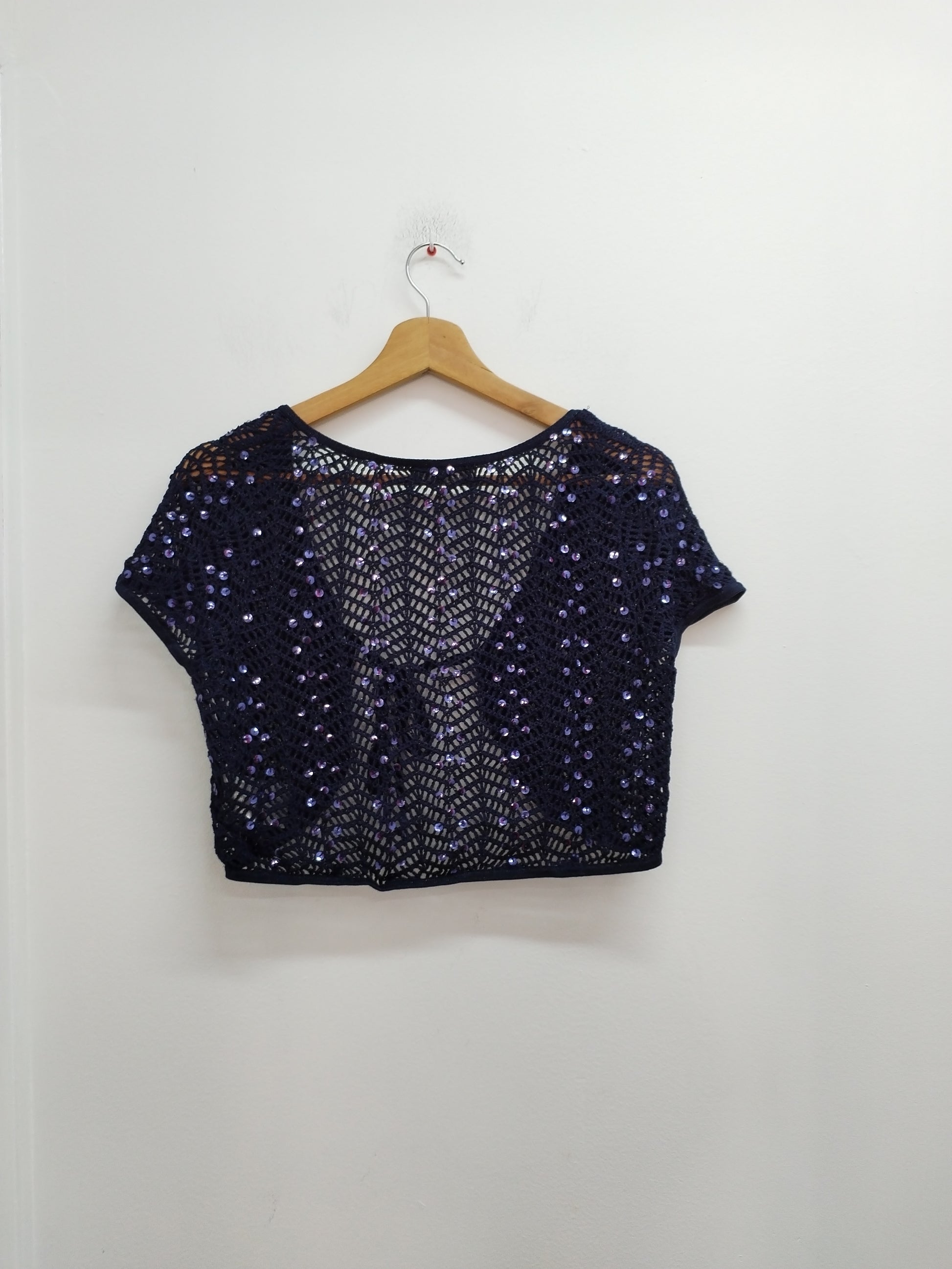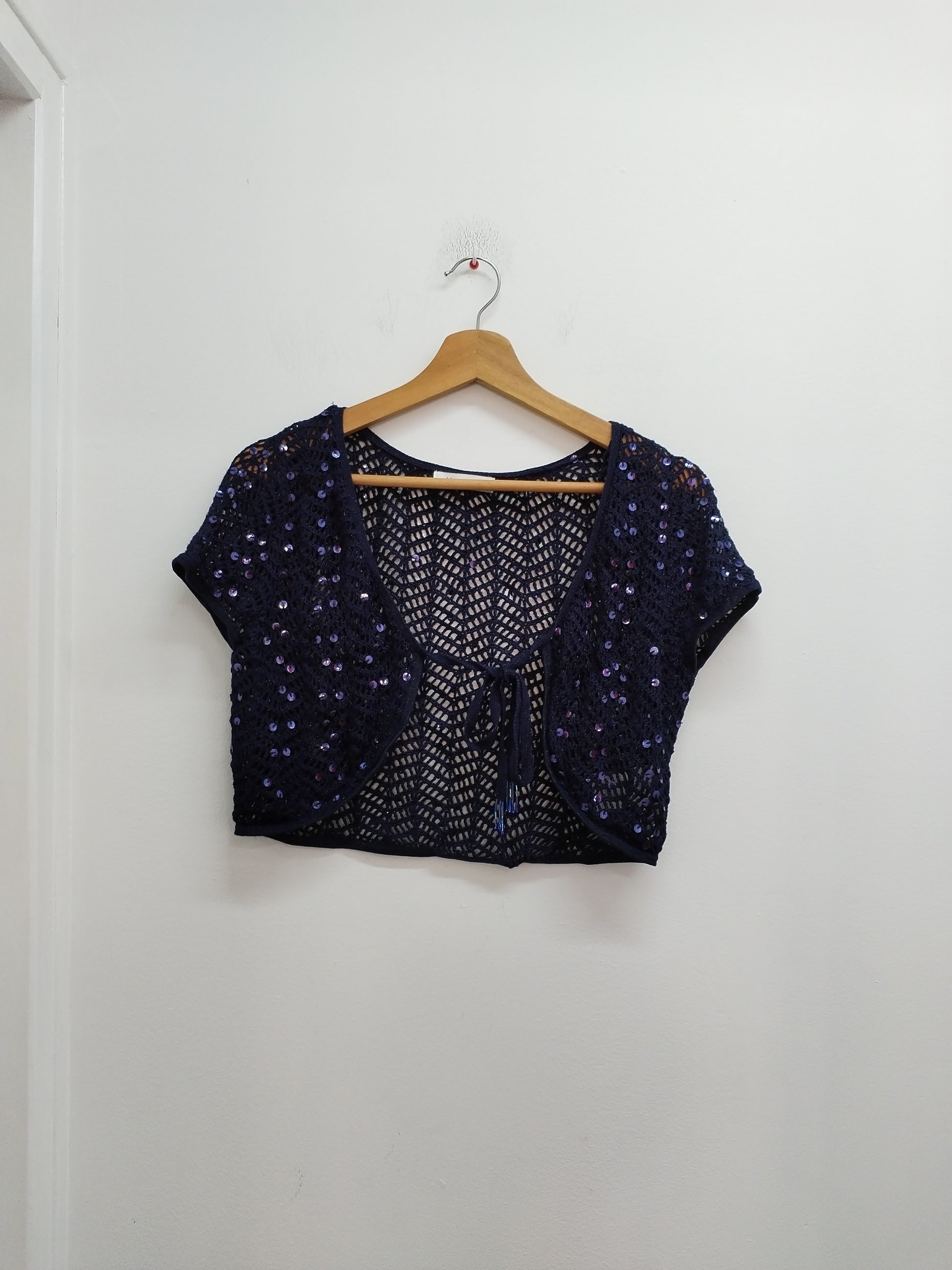 Gilet court manches courtes mailles ajourés Yessica marine avec sequins Taille 44