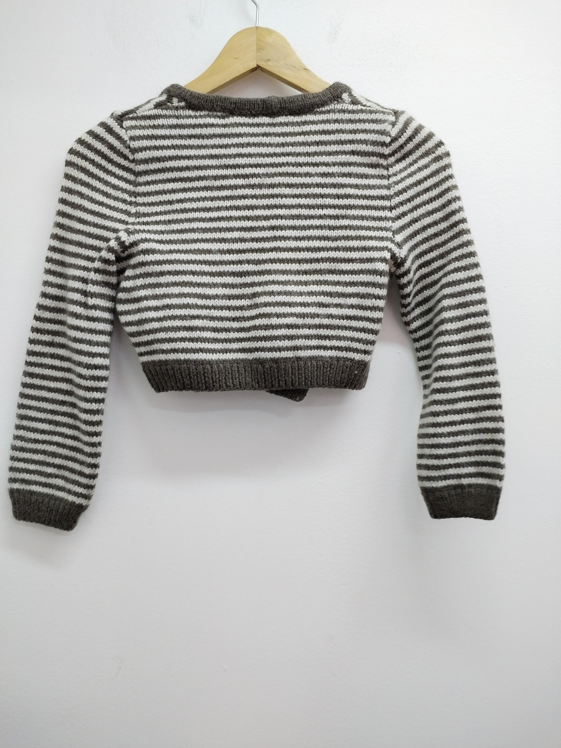 Gilet fait main rayé beige et marton Taille 6 Ans