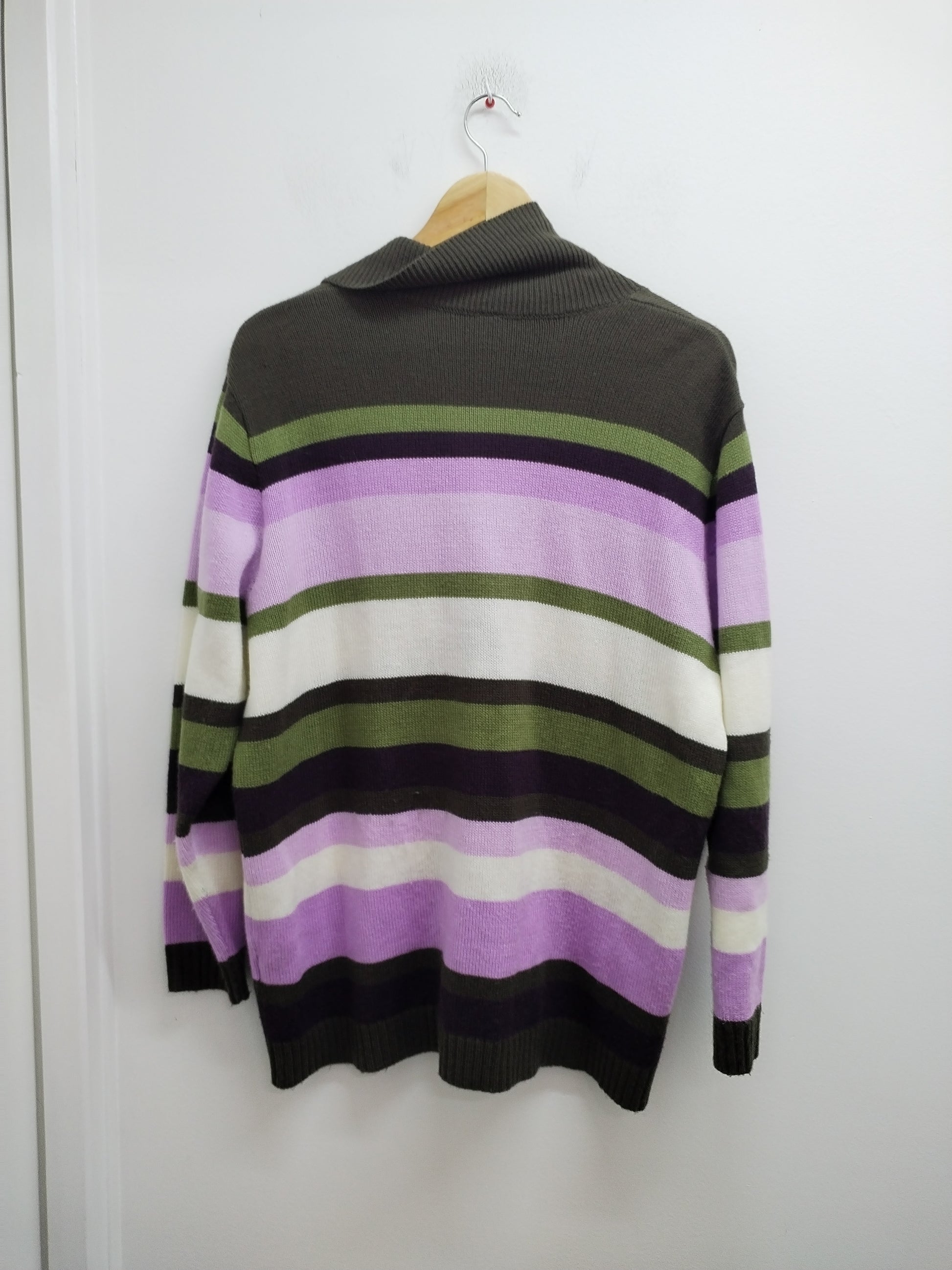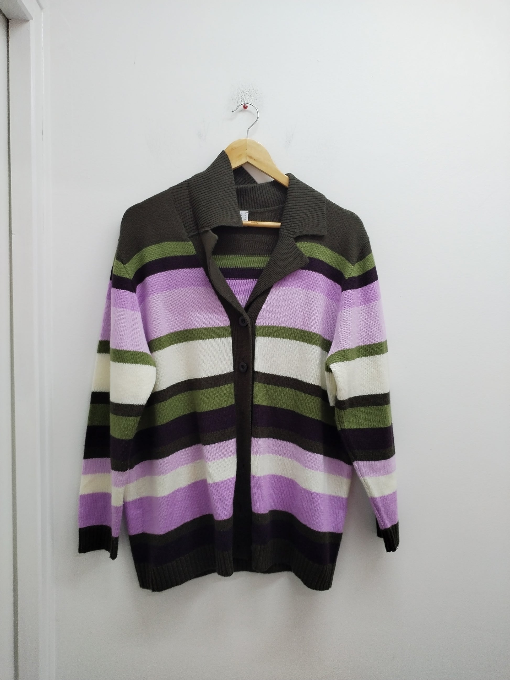 Gilet rayé kaki,vert, rose et blanc Taille 48