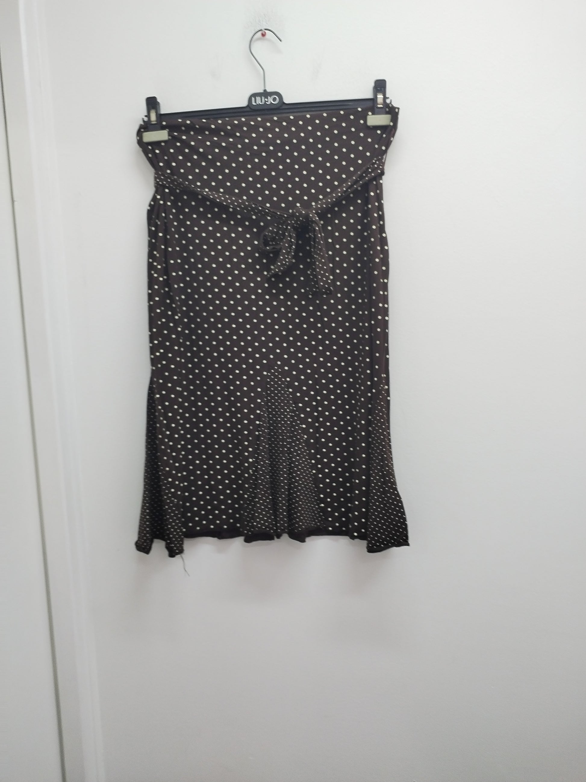 Jupe mi-longue Canda marron à pois Taille 48