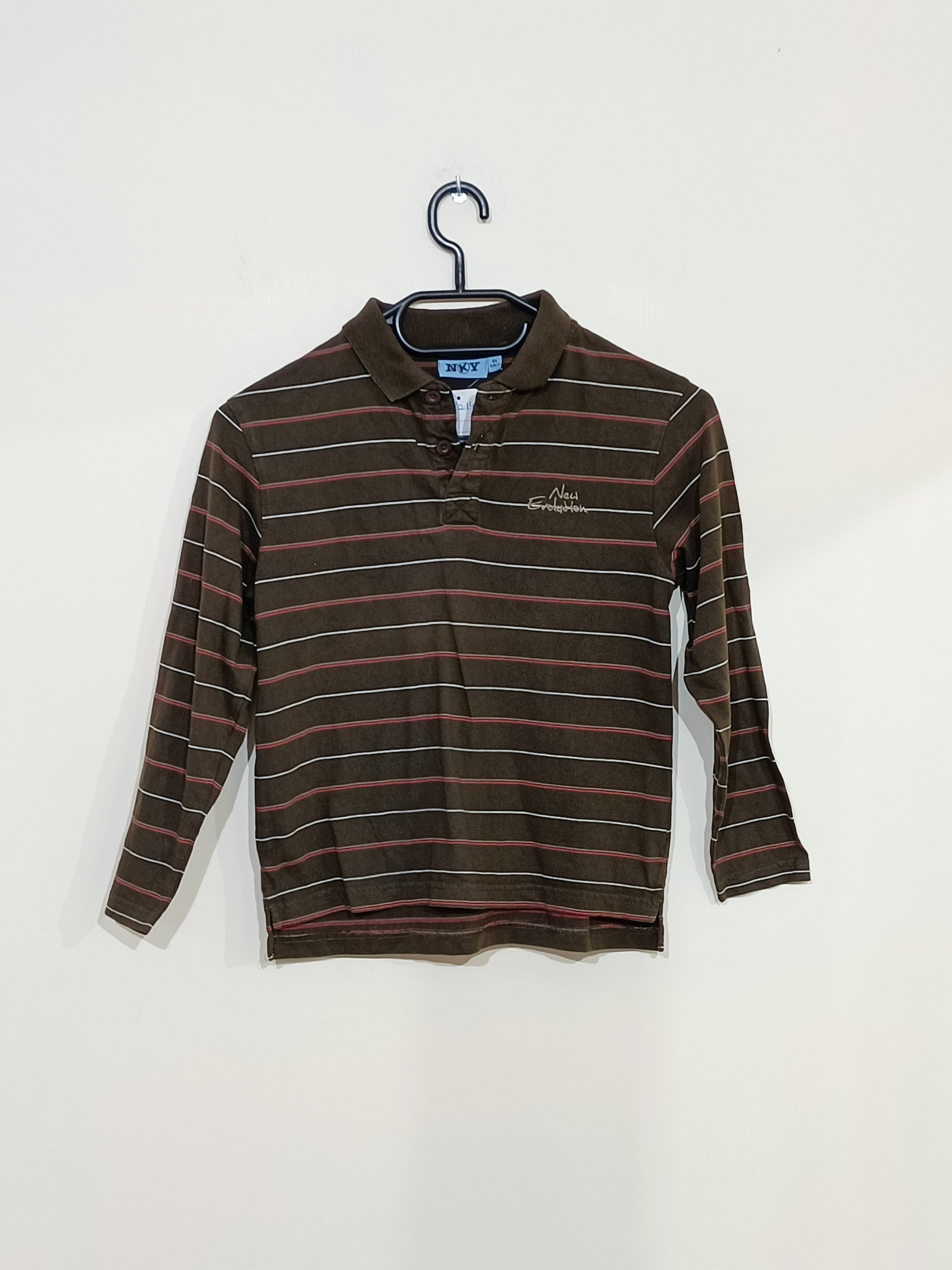 Polo manches longues NKY marron rayé Taille 8 Ans