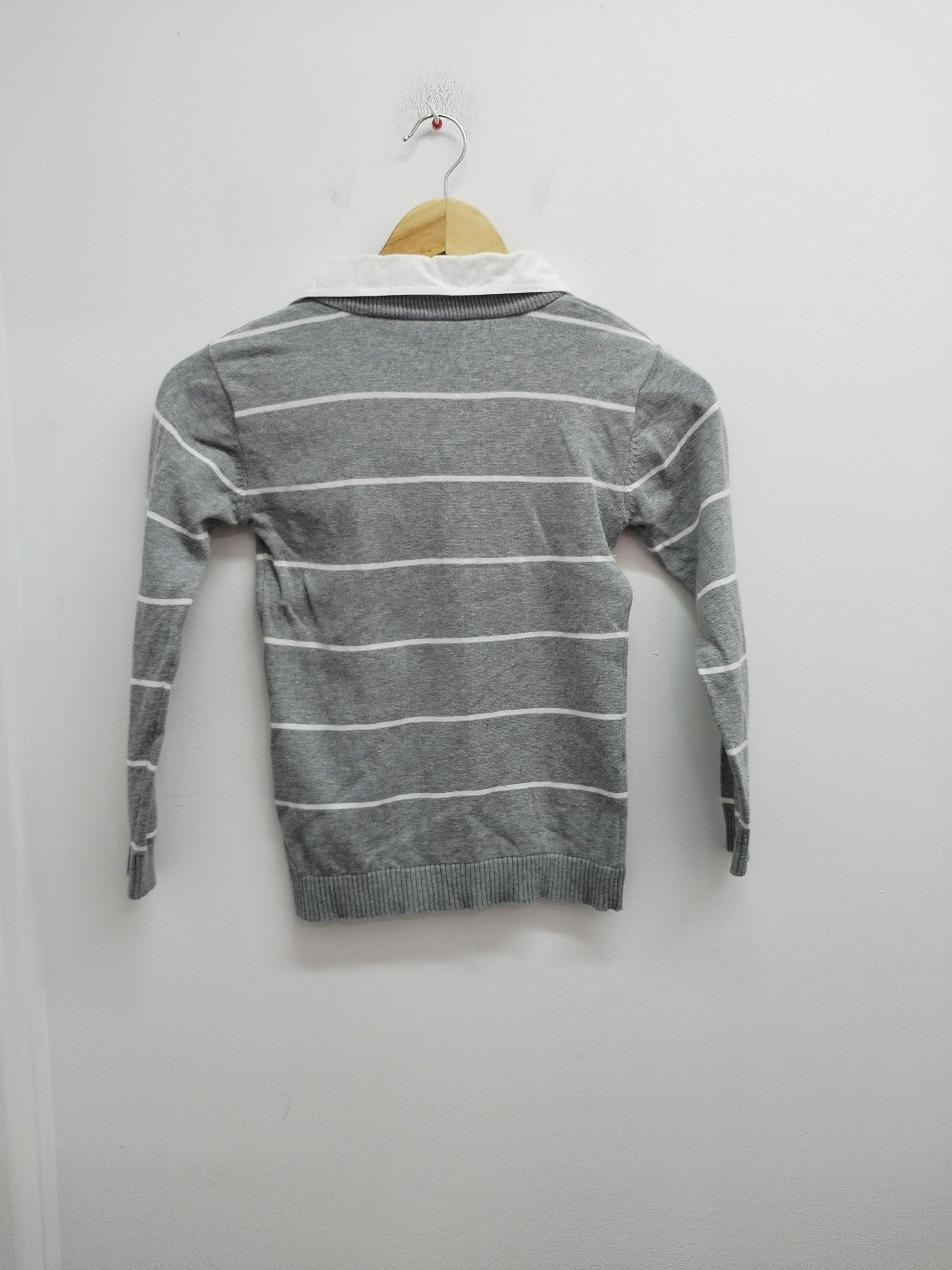 Pull avec col chemise NKY gris rayé blanc Taille 10 Ans