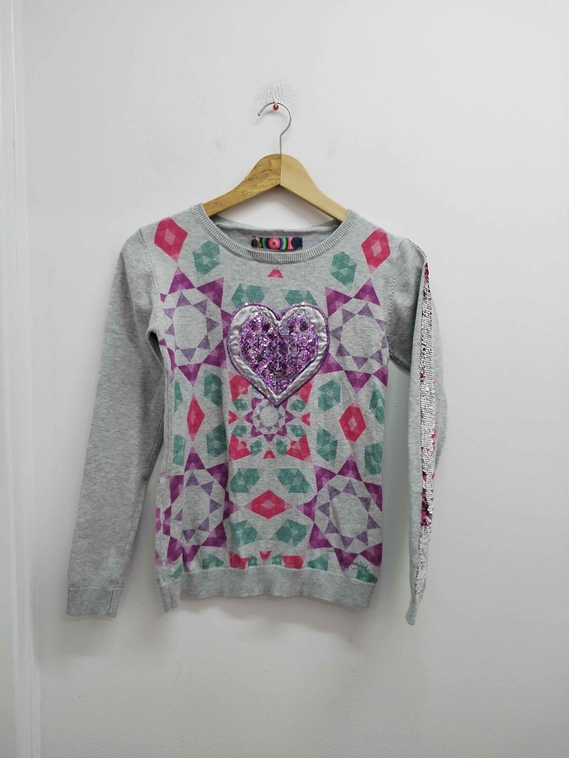 Pull fin Desigual gris imprimé avec strass Taille 11/12 Ans