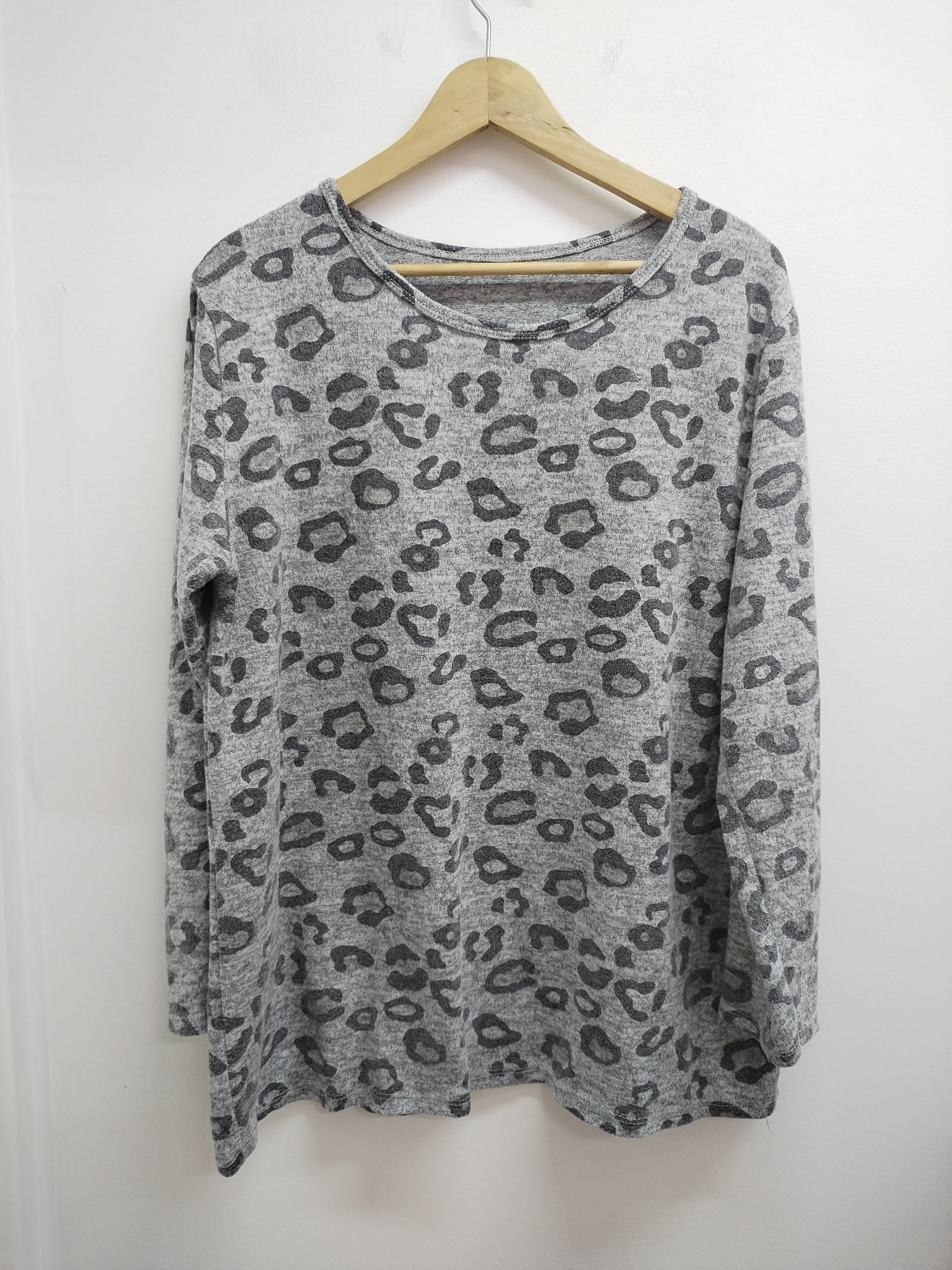 Pull fin gris chiné imprimée léopard Taille XL