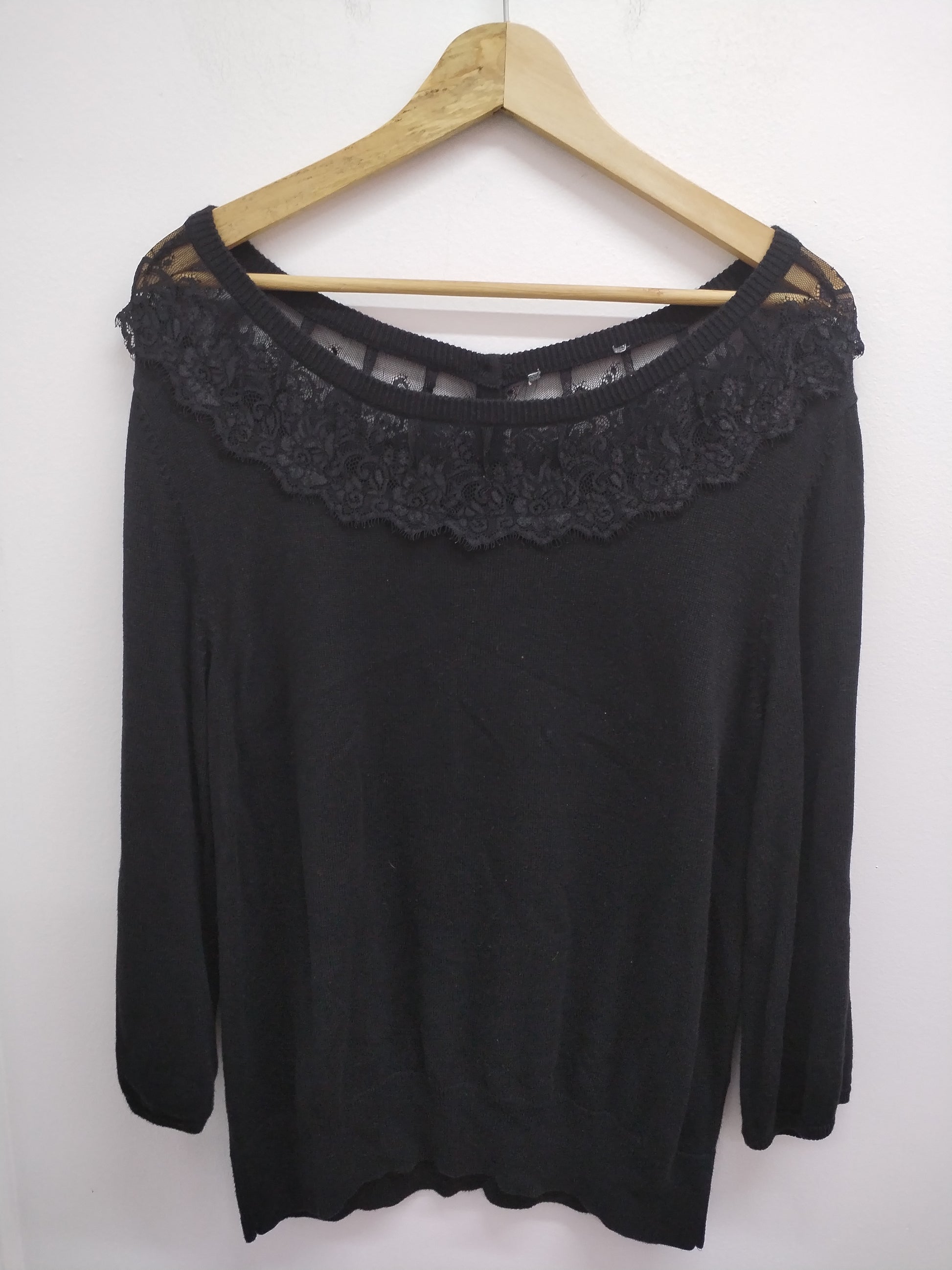 Pull fin manches 3/4 noir avec dentelle Taille L