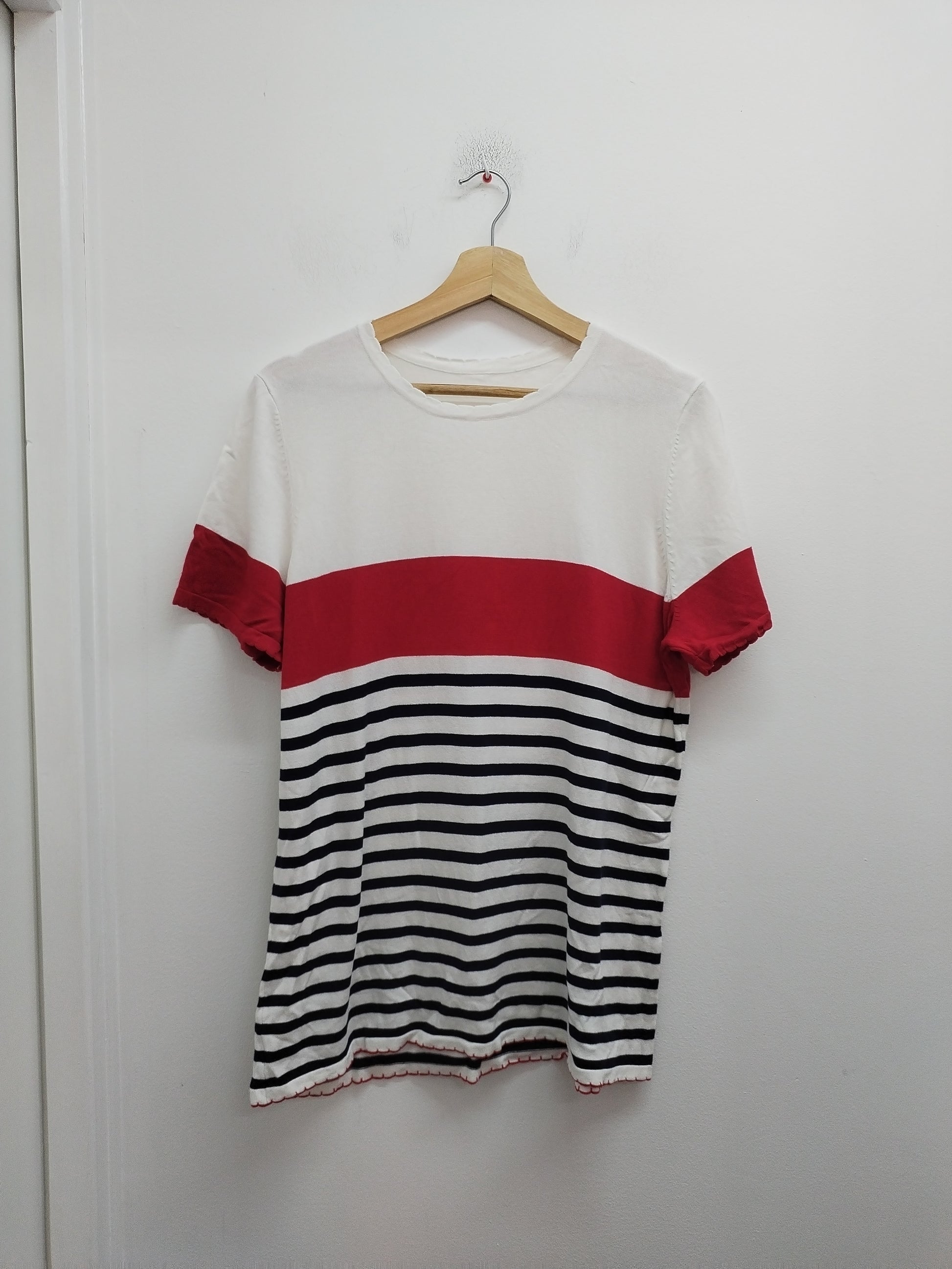 Pull fin manches courtes rouge, blanc et marine rayé Taille L
