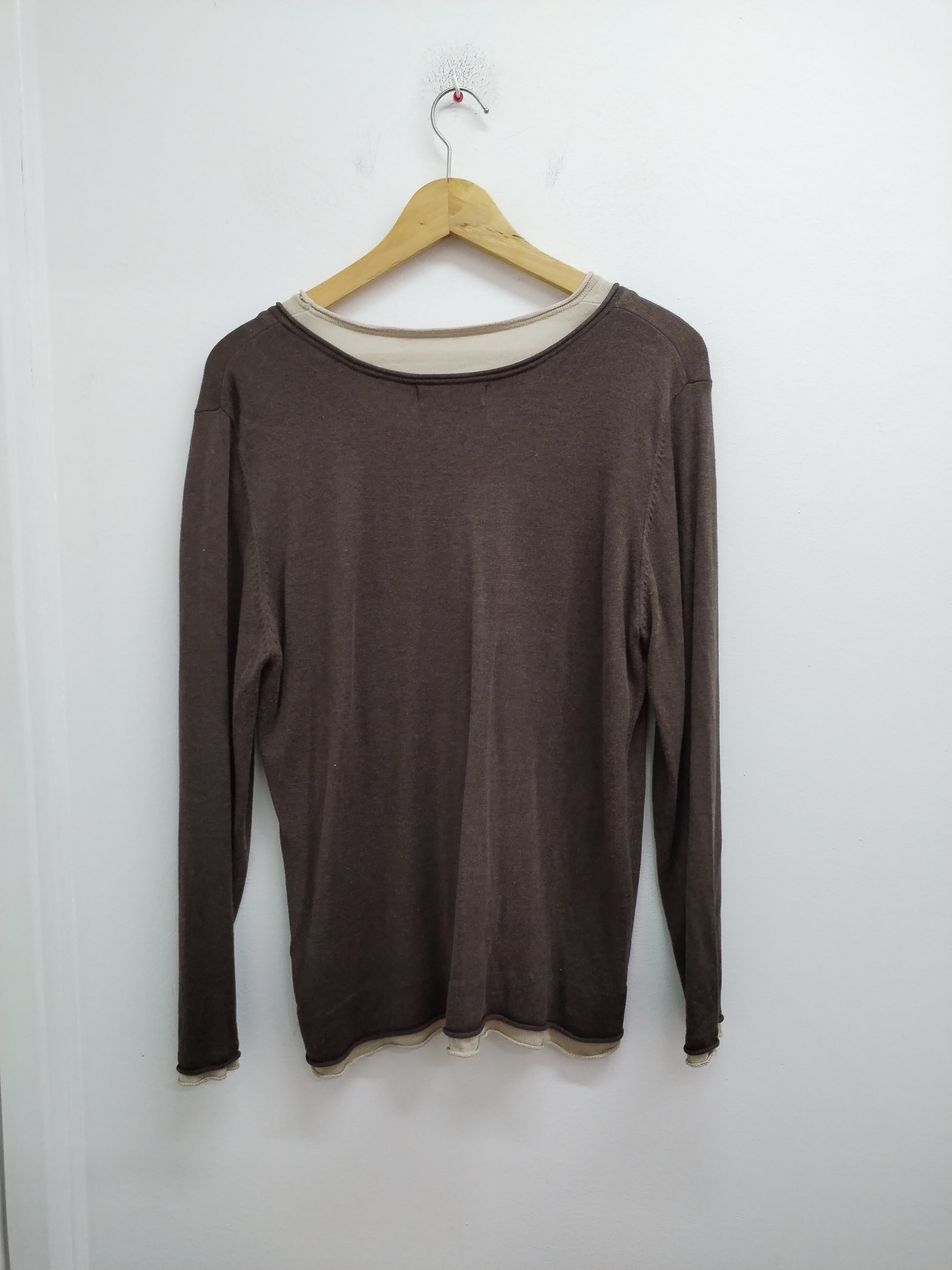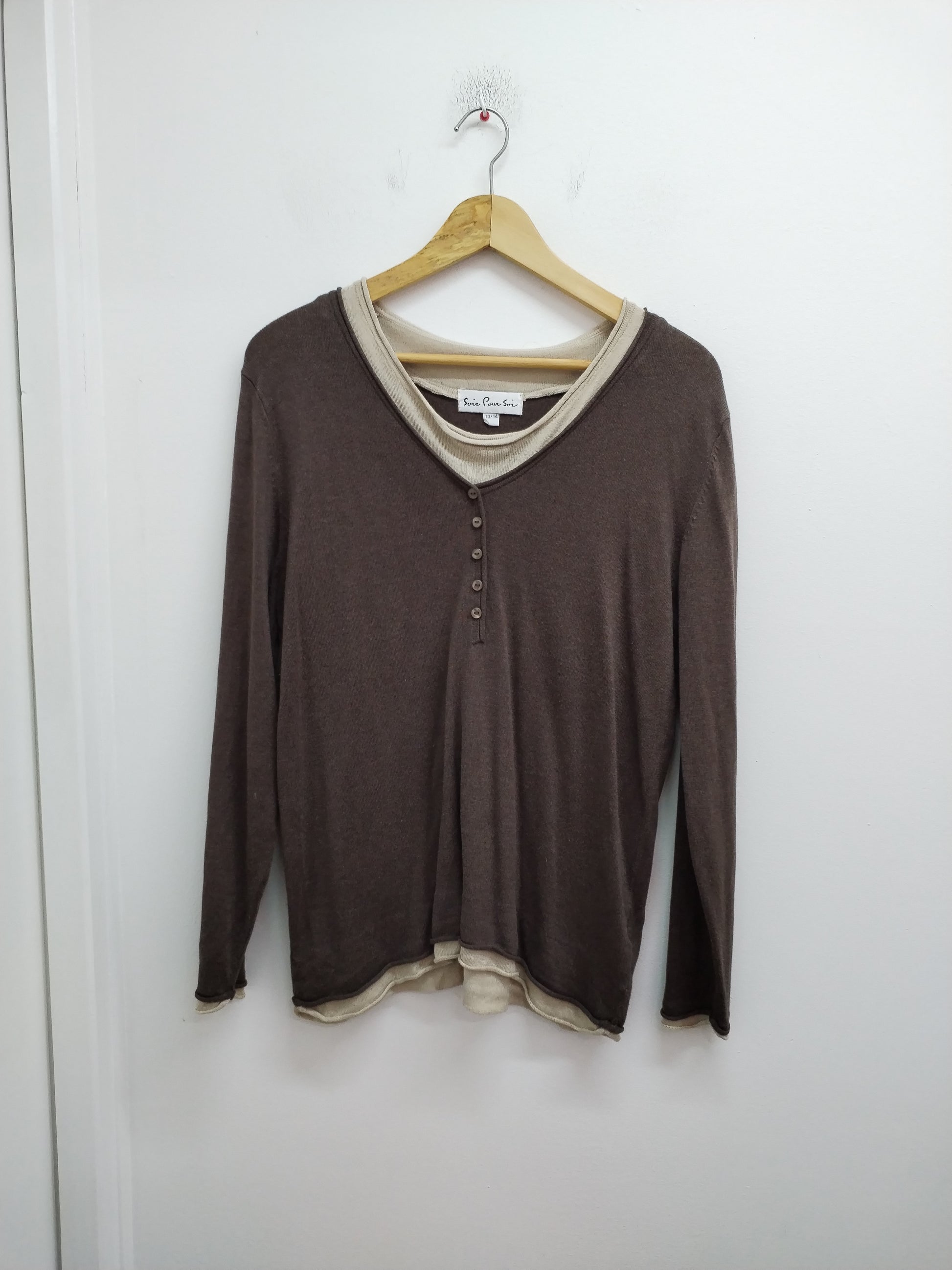 Pull fin Soie Pour Soi beige et marron Taille L/XL