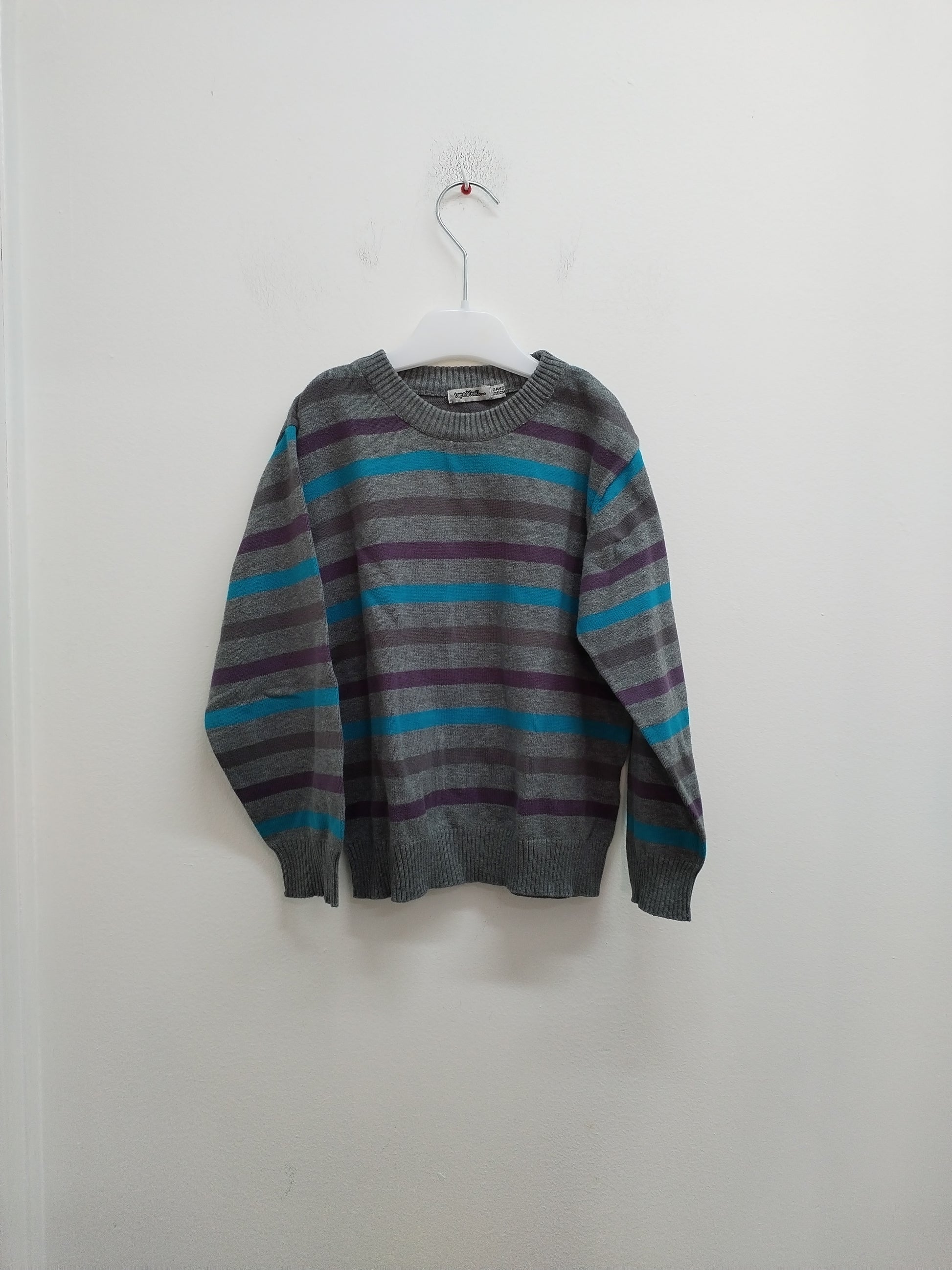 Pull fin Tape à l'Œil gris rayé Taille 8 Ans