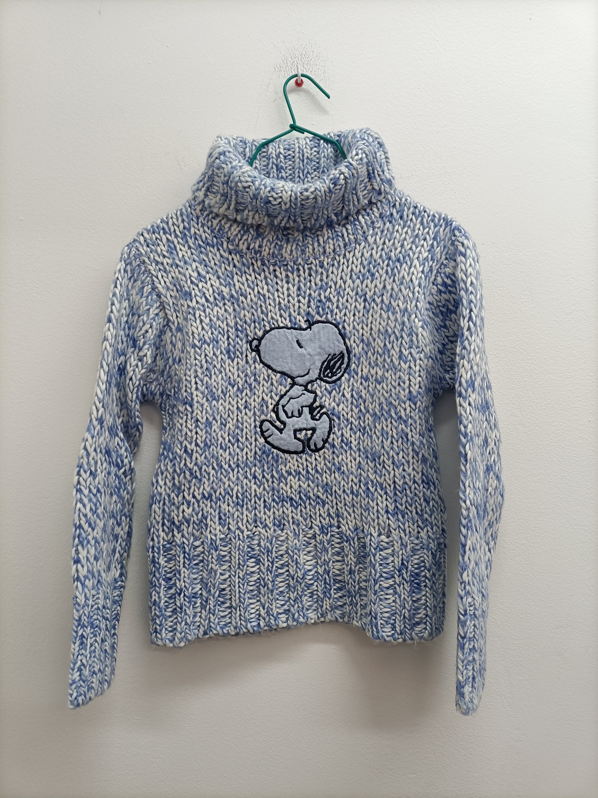 Pull grosses mailles Snoopy bleu et blanc Taille 6 Ans