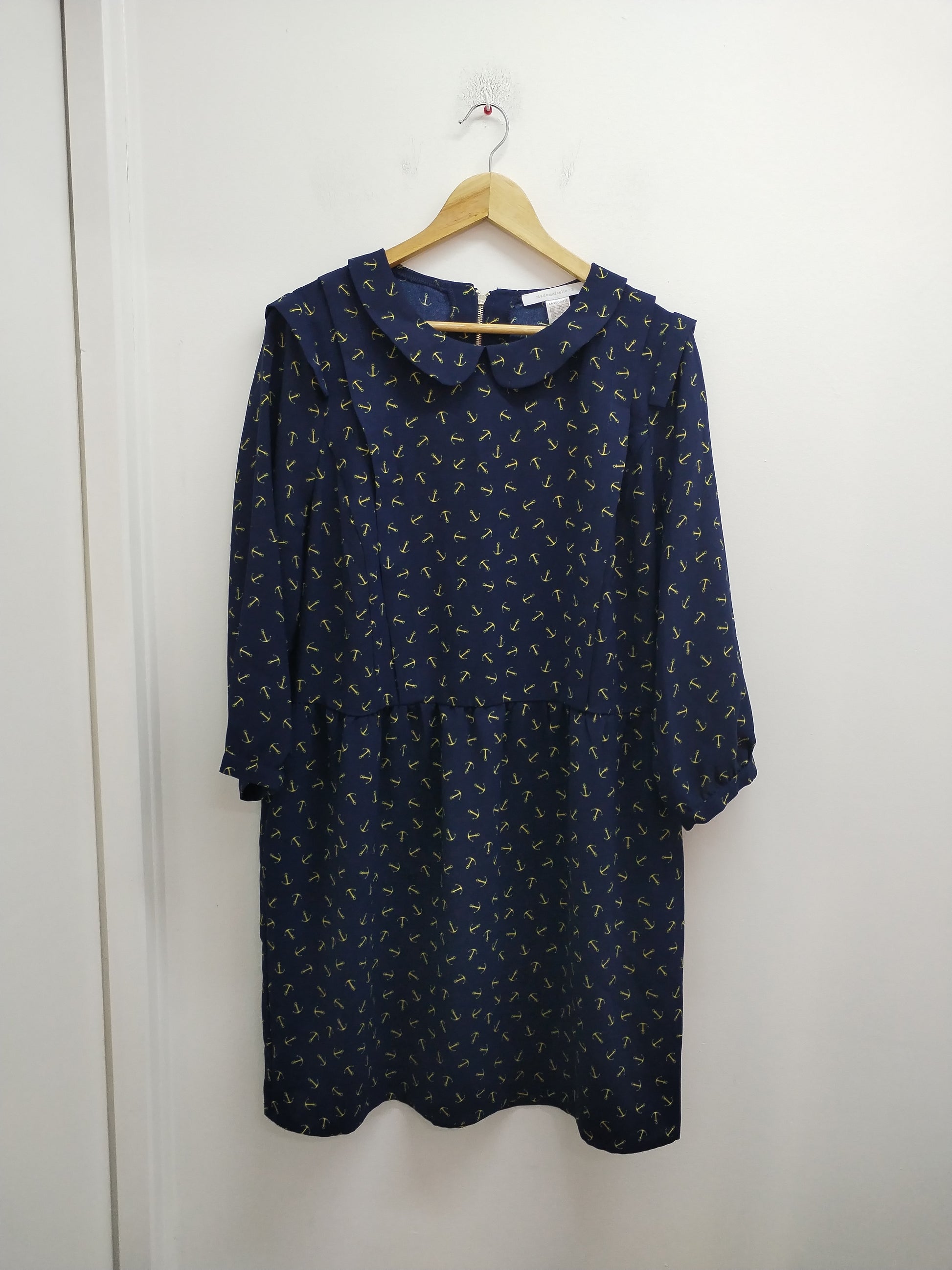 Robe manches 3/4 Mademoiselle R marine avec motifs "ancre" Taille 48