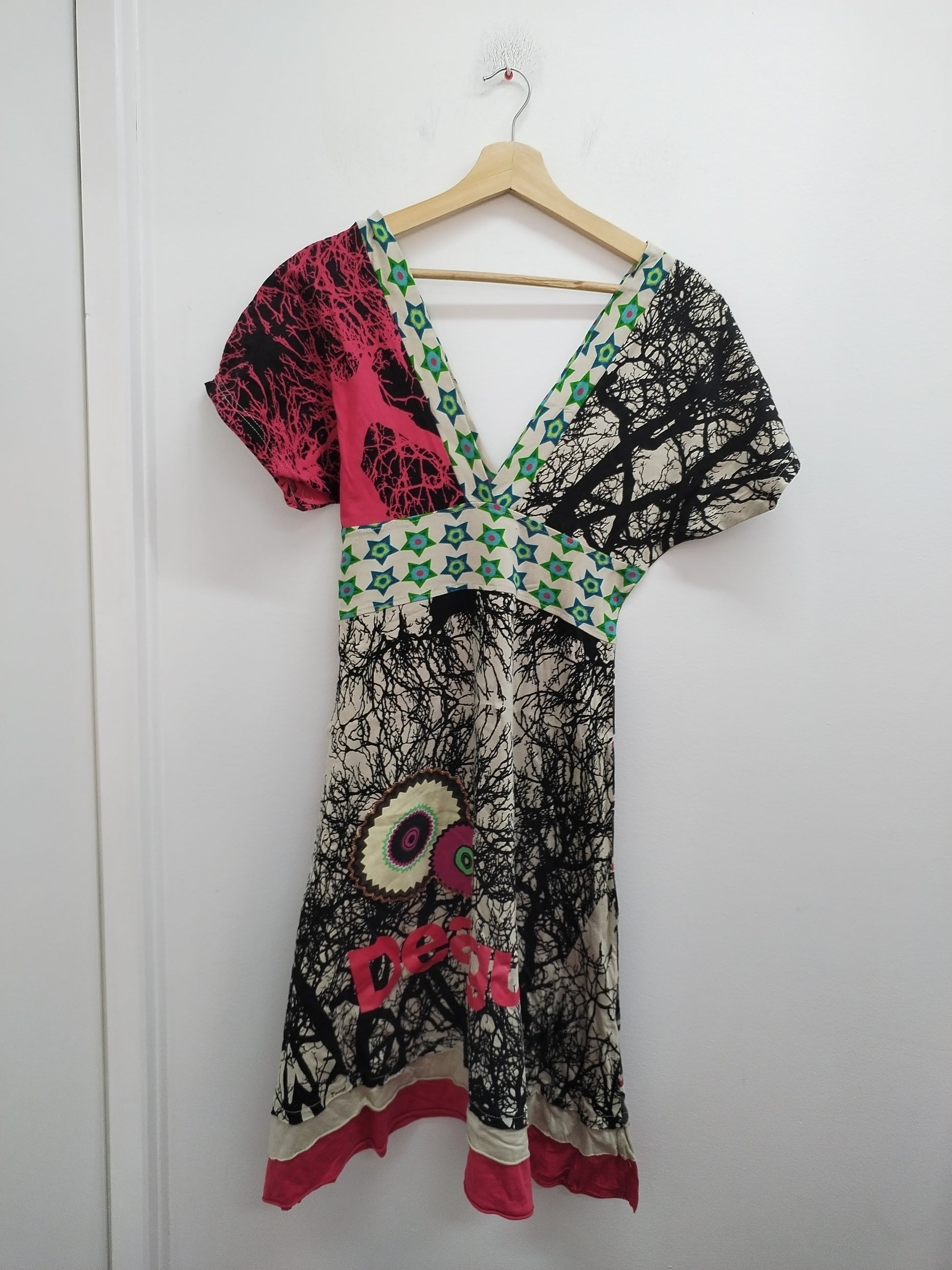 Colorée et audacieuse, cette robe à manches courtes imprimée de la marque Desigual est une pièce signature de la marque espagnole, reconnaissable entre toutes. Ses imprimés graphiques et colorés débordants de créativité en font une pièce unique et festive, parfaite pour se démarquer lors d'une sortie en ville ou d'un événement estival.