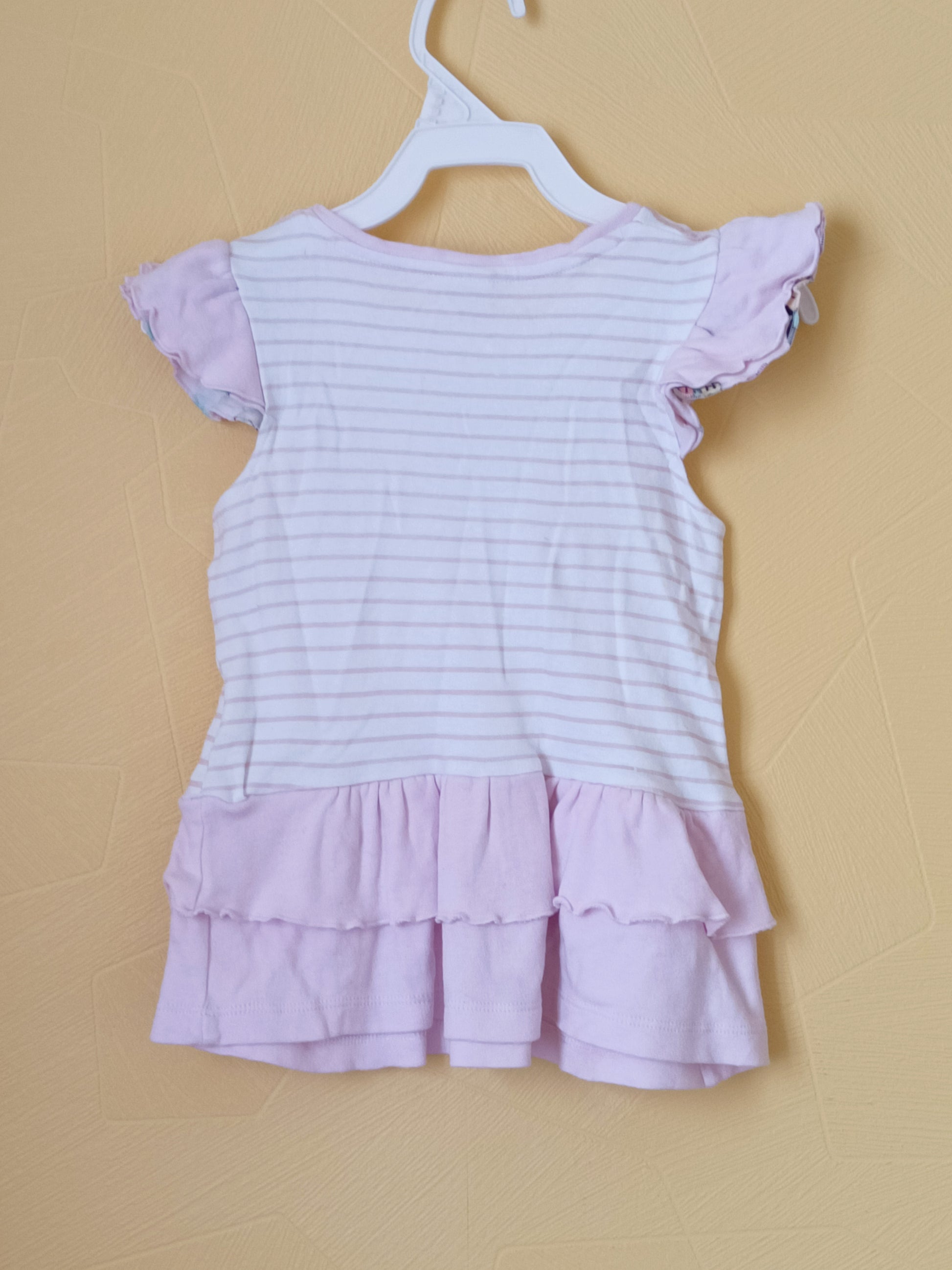 Robe manches courtes Disney "Minnie" rayée rose et blanche Taille 24 Mois
