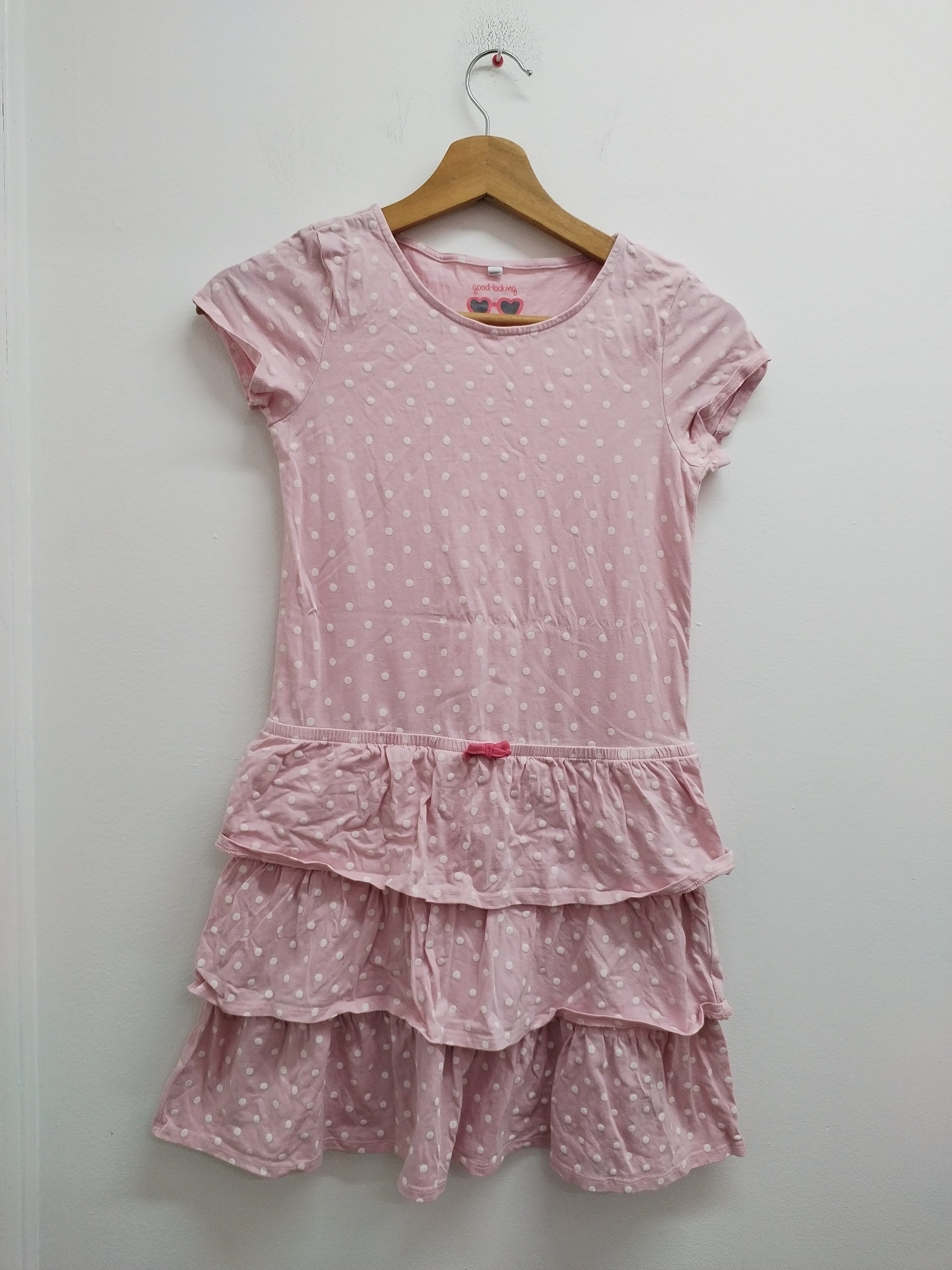 Robe manches courtes Good Looking rose à pois Taille 10 Ans