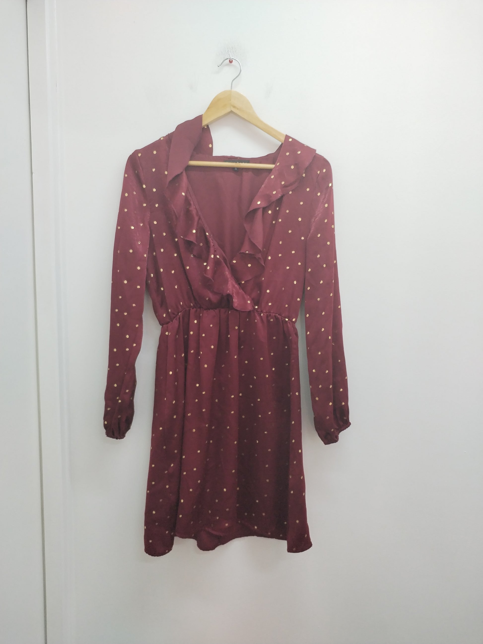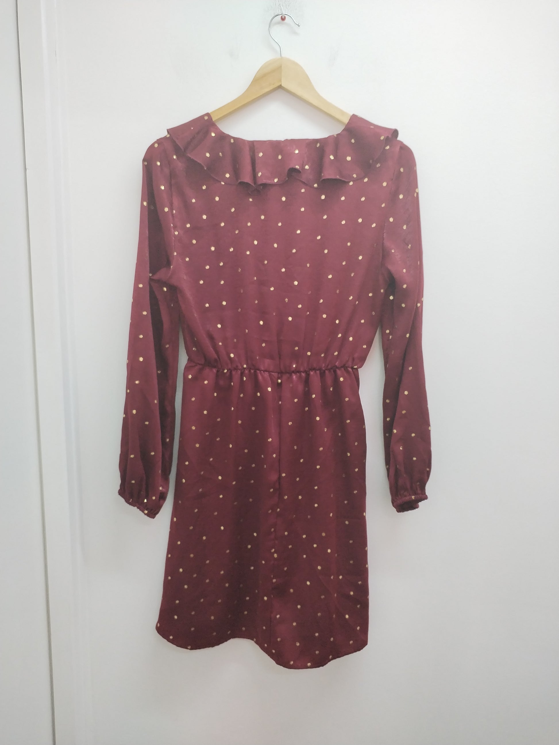 Robe manches longues By Clara bordeaux à pois dorés Taille S