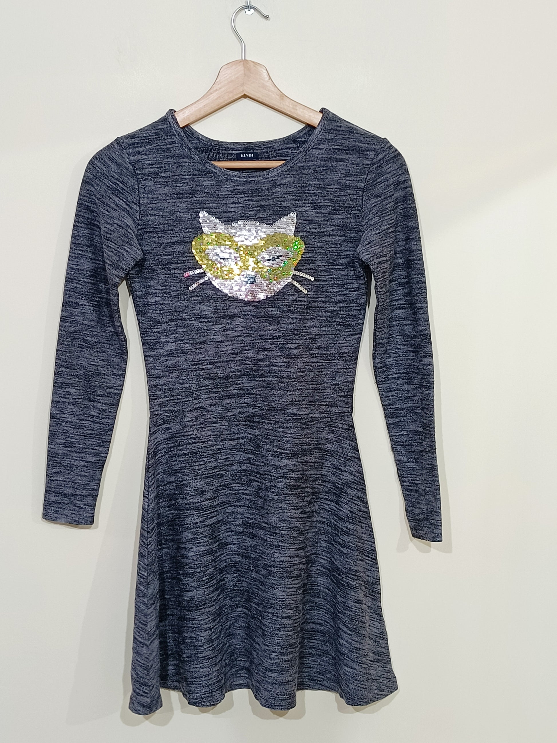 Robe manches longues Kiabi grise chinée avec sequins Taille 12 Ans