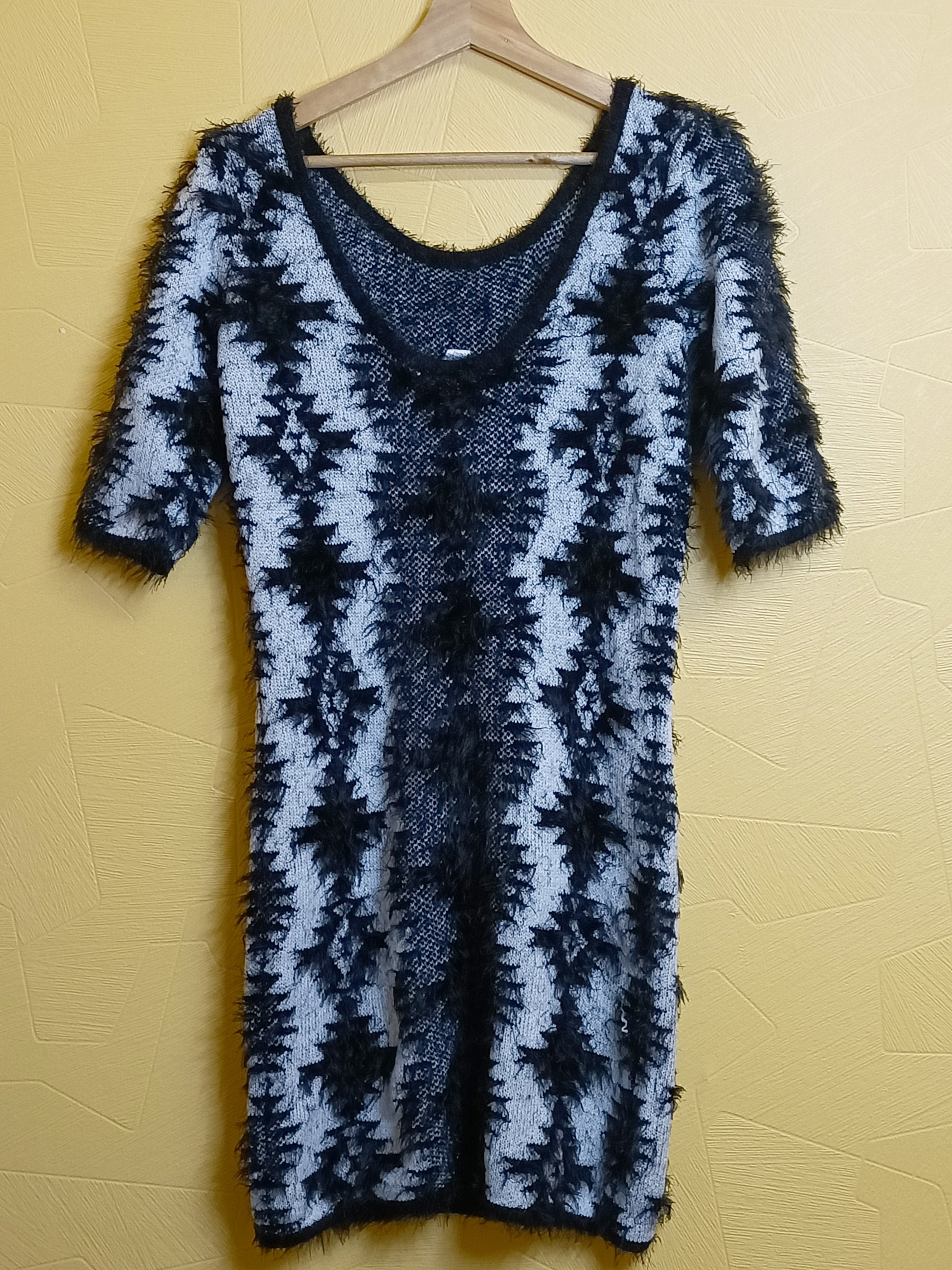 Robe pull maille poilue manches 3/4 Kiabi noire et blanche Taille S