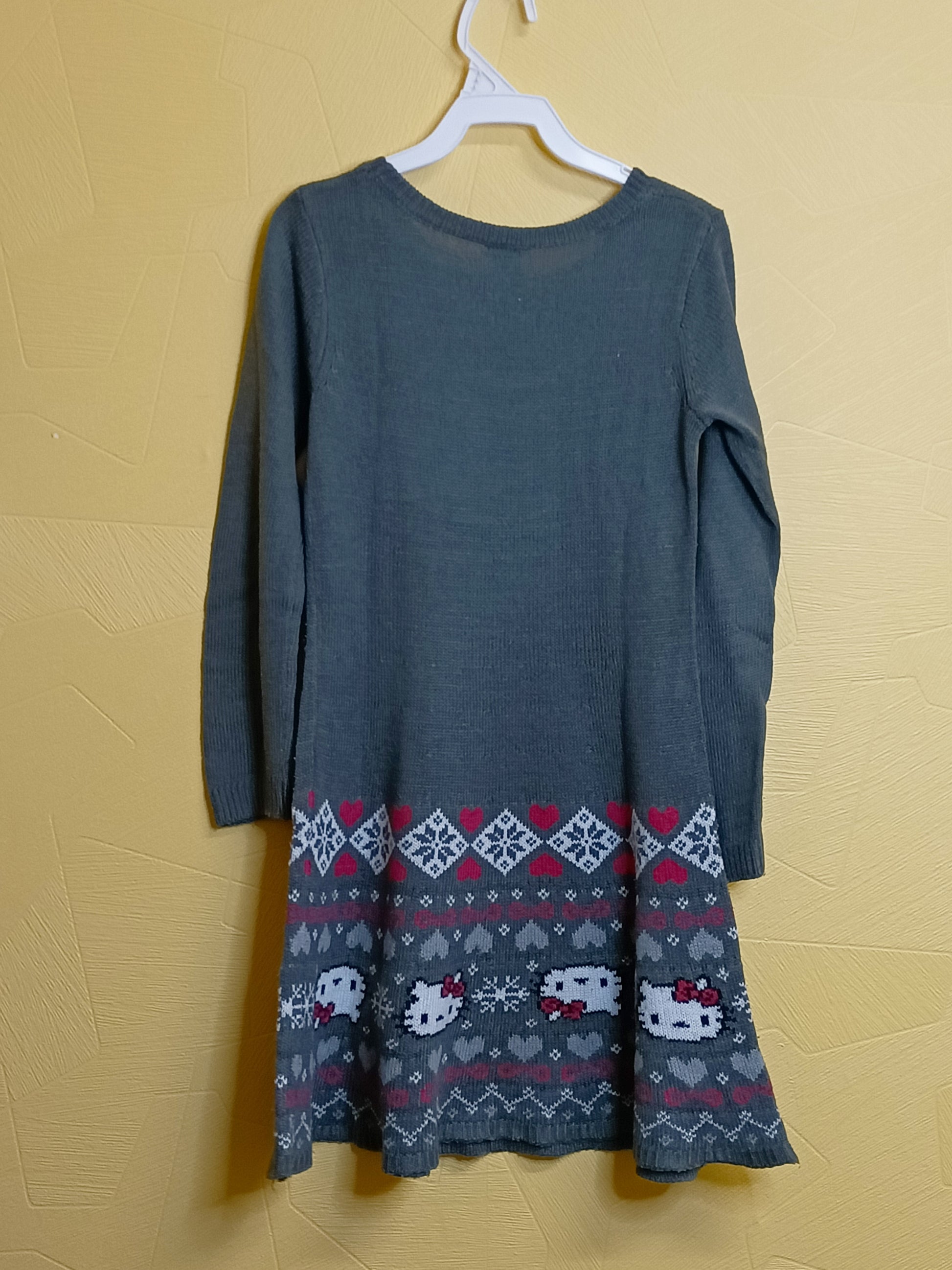 Robe pull manches longues Hello Kitty gris avec broderie Taille 8 Ans