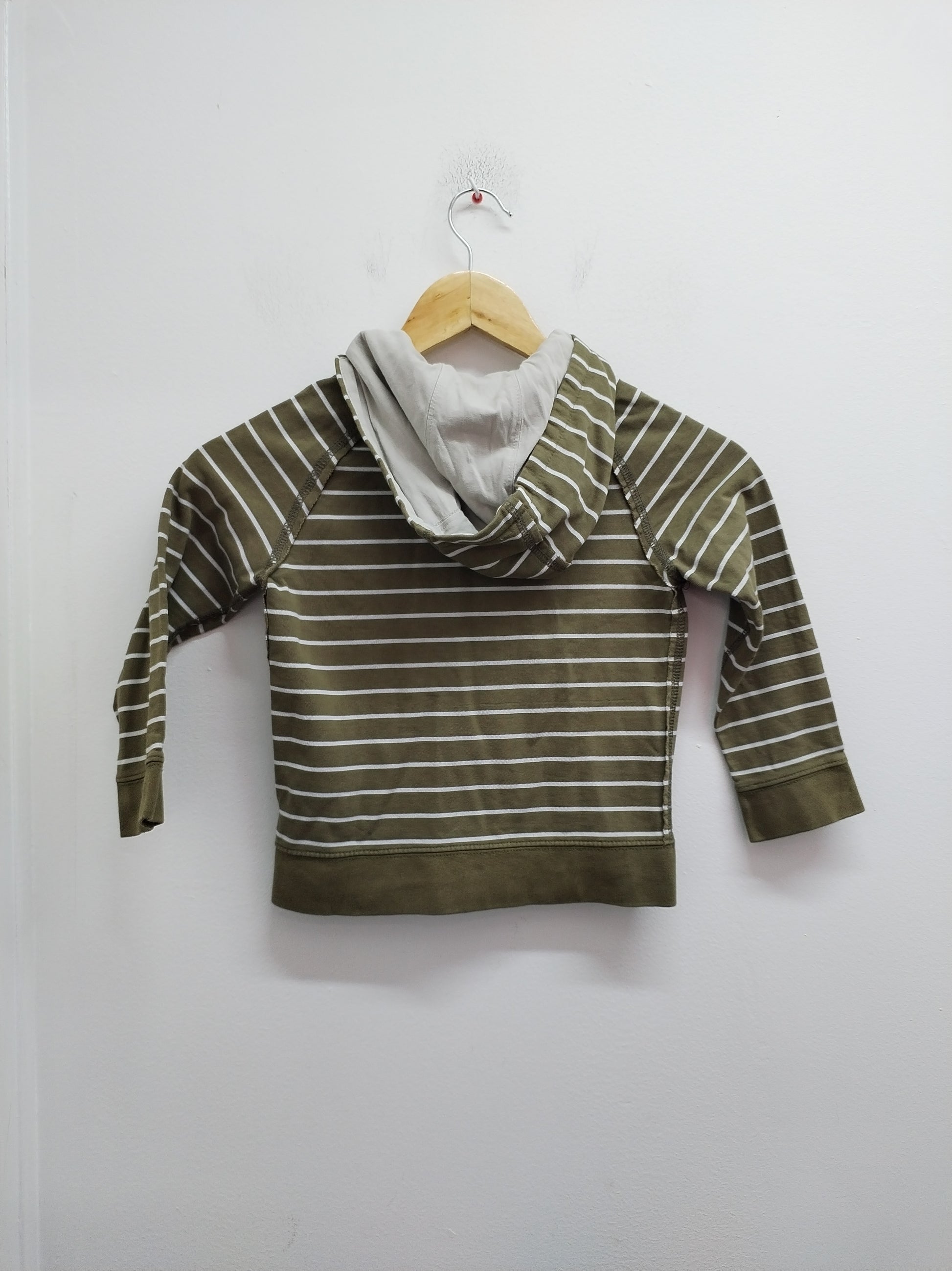 Sweat à capuche zippé Okaïdi rayé kaki et blanc Taille 4 Ans