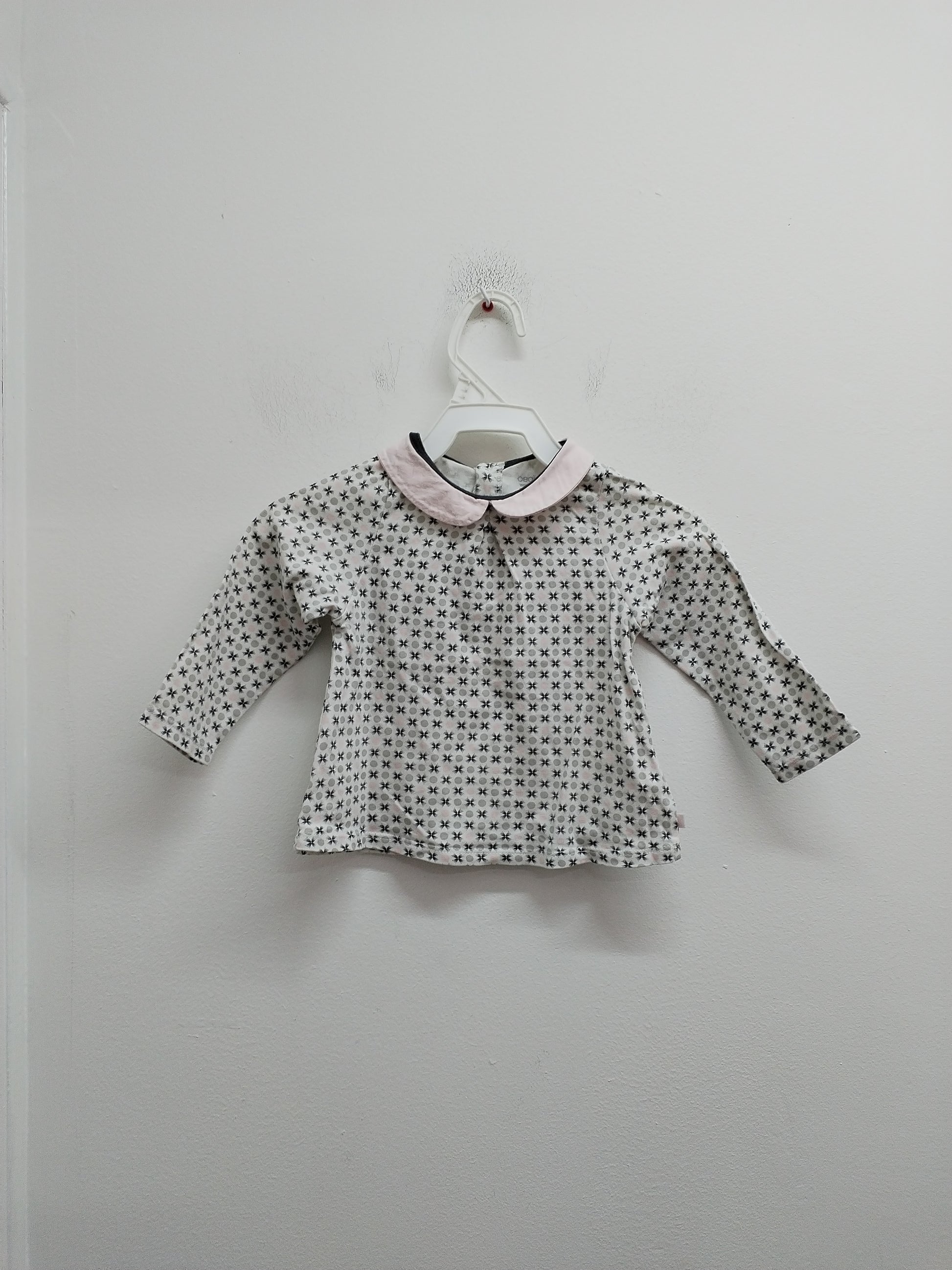 T-shirt manches longues avec col Obaïbi blanc à motifs Taille 18 Mois