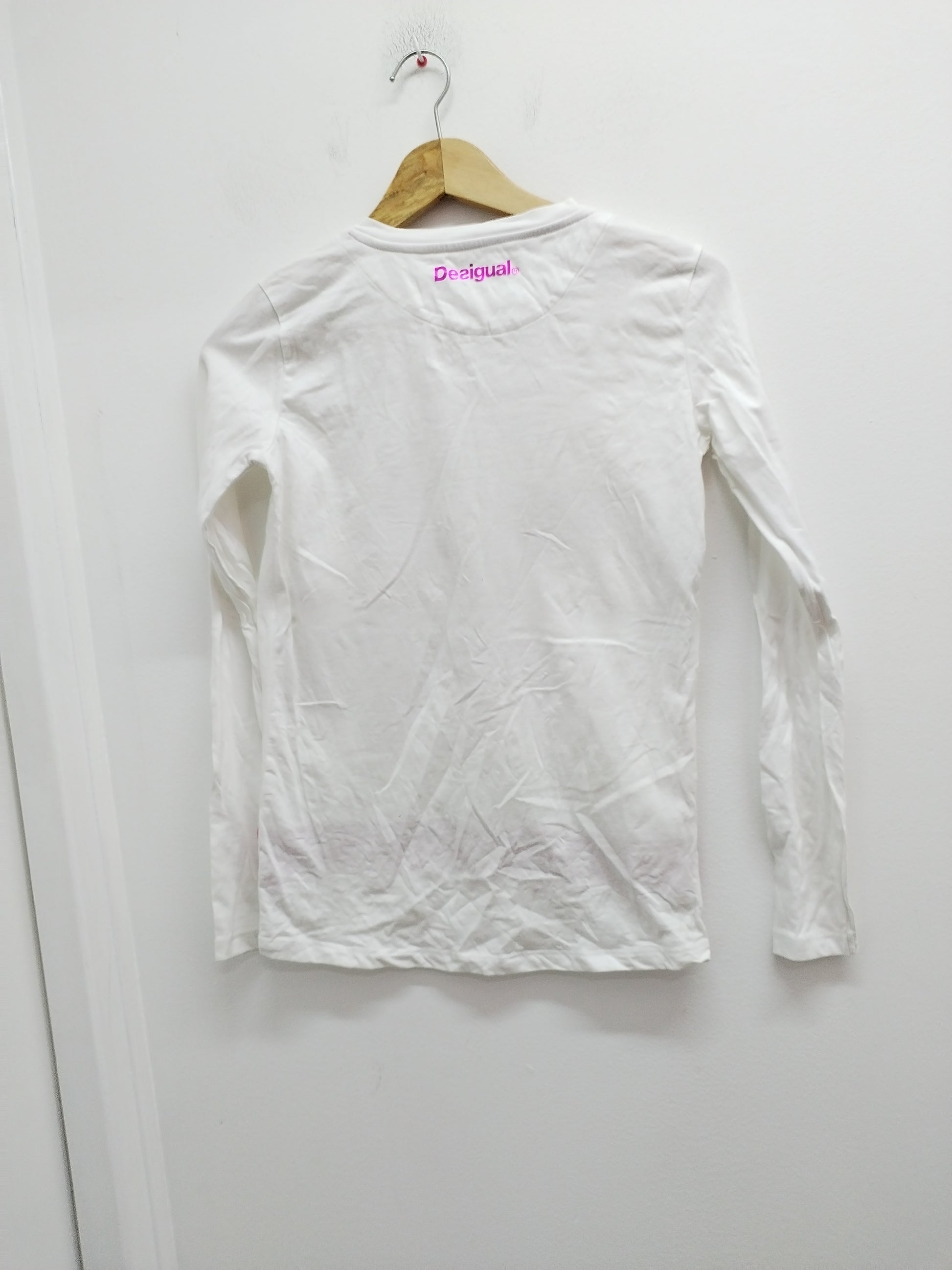 T-shirt manches longues Desigual blanc avec impression et sequins Taille 11/12 Ans