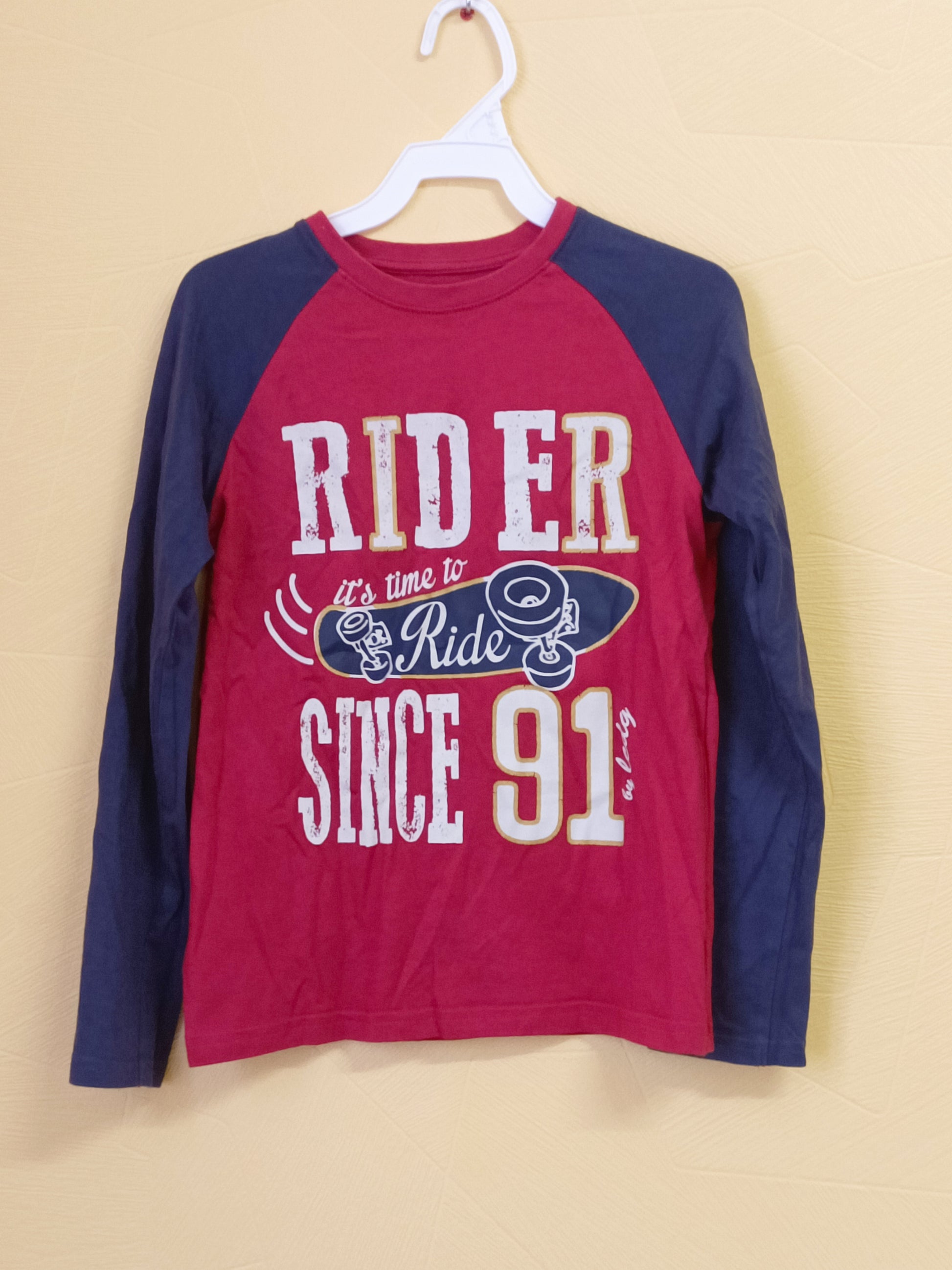 T-shirt manches longues LCDP gris et rouge avec impression Taille 10 Ans