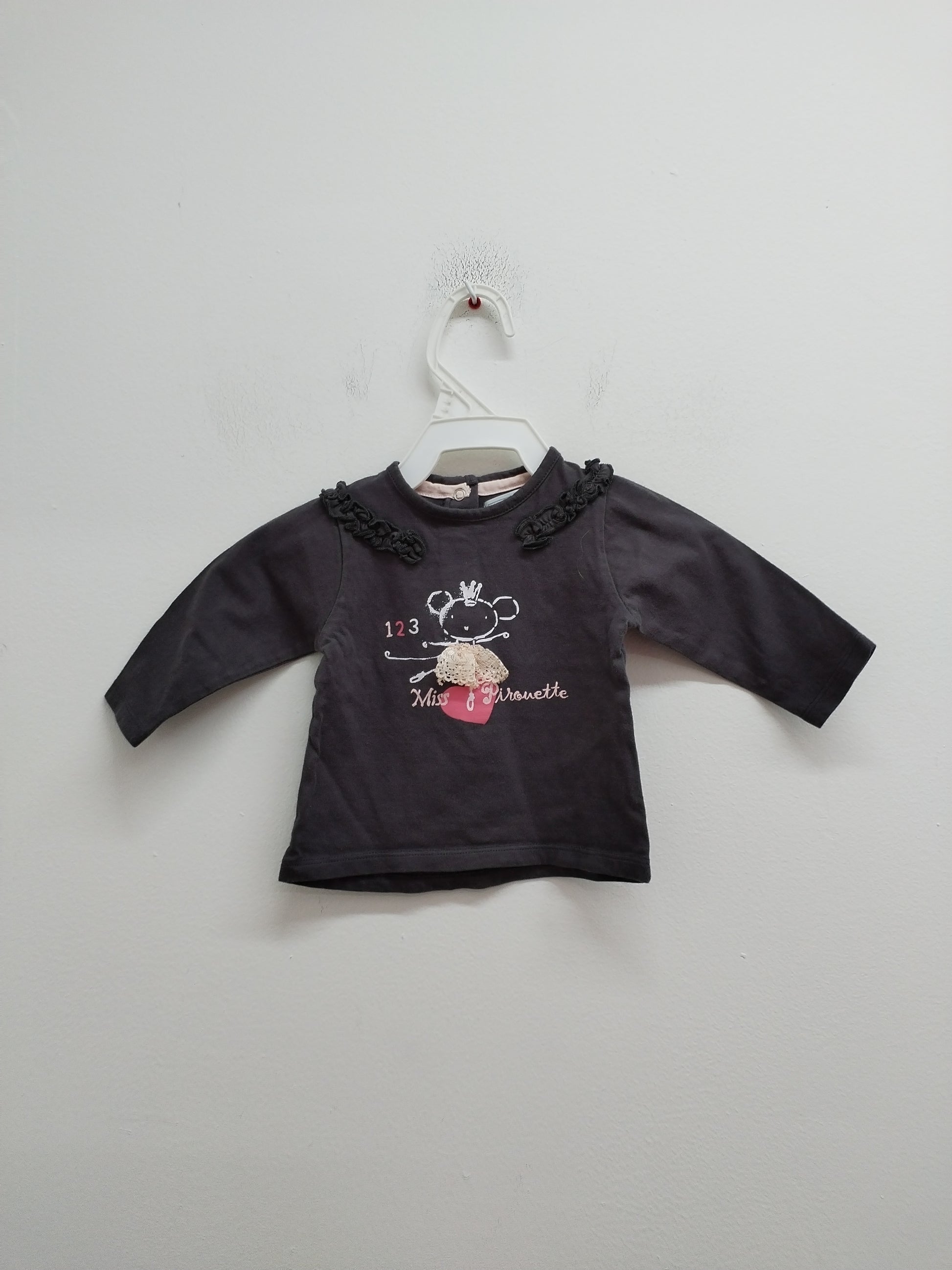 T-shirt manches longues Mes Petits Cailloux gris avec impression Taille 6 Mois