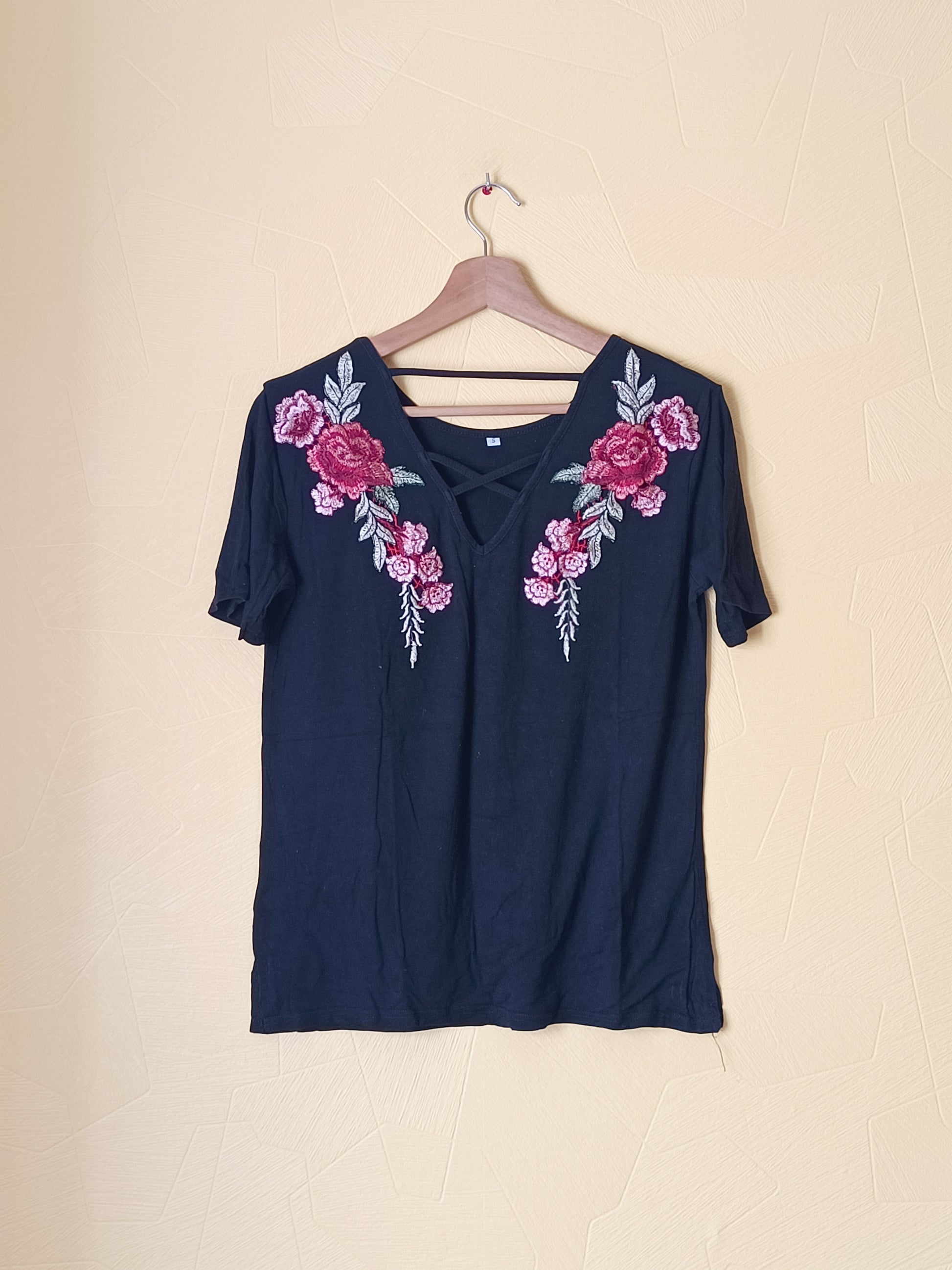 T-shirt noir avec broderie Taille S