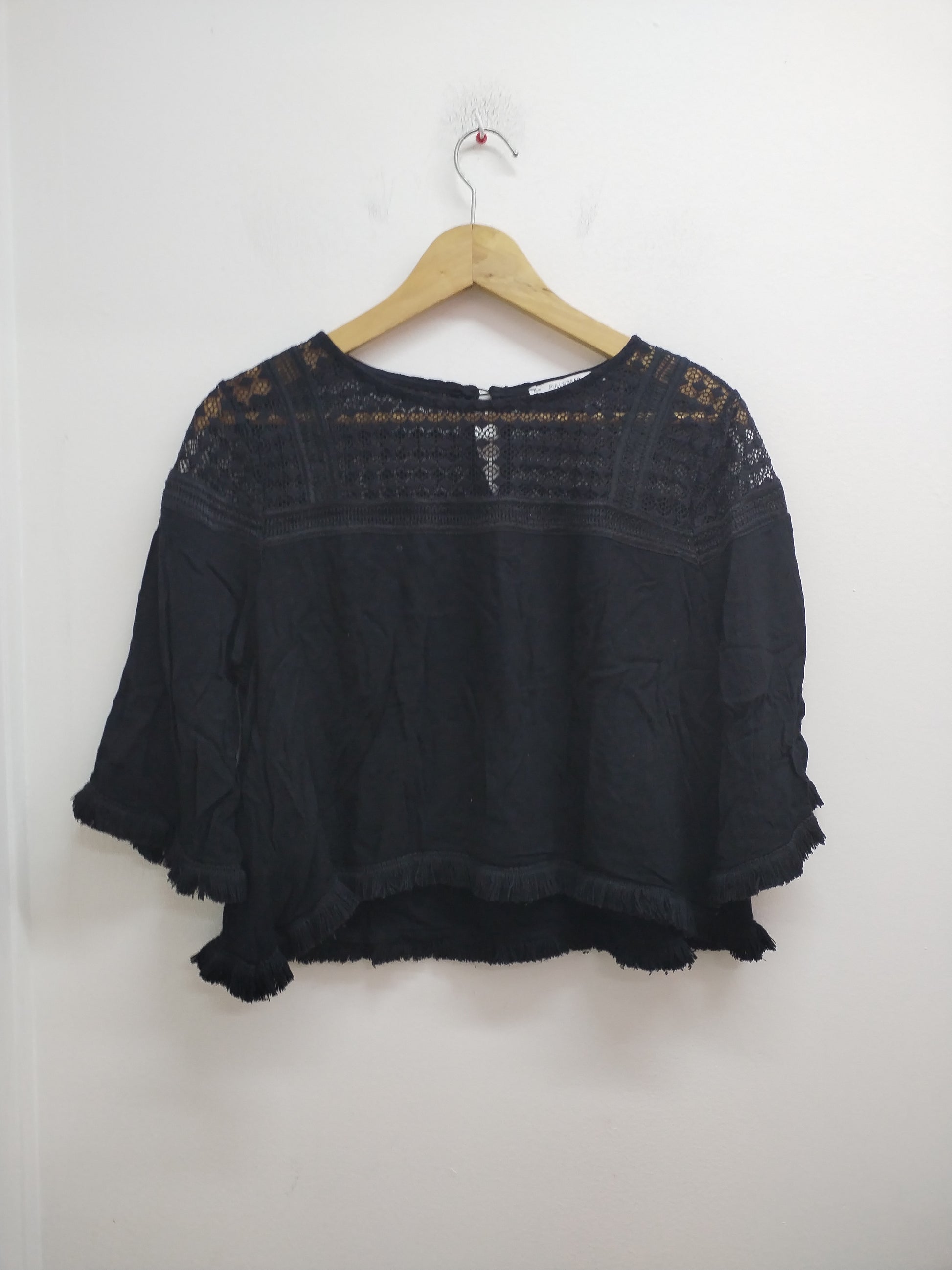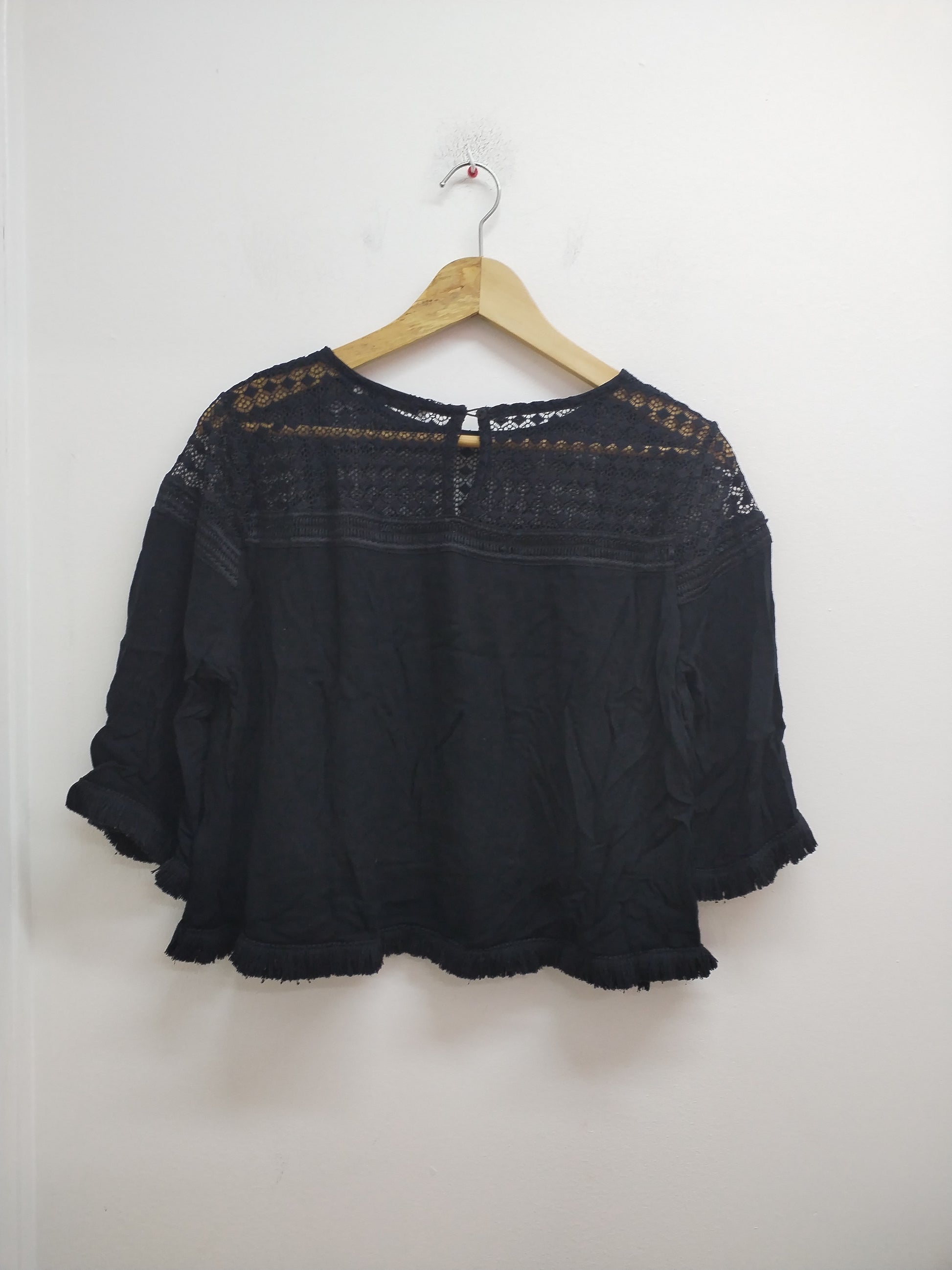 Tunique courtes manches 3/4 Pull & Bear noire avec dentelle Taille L