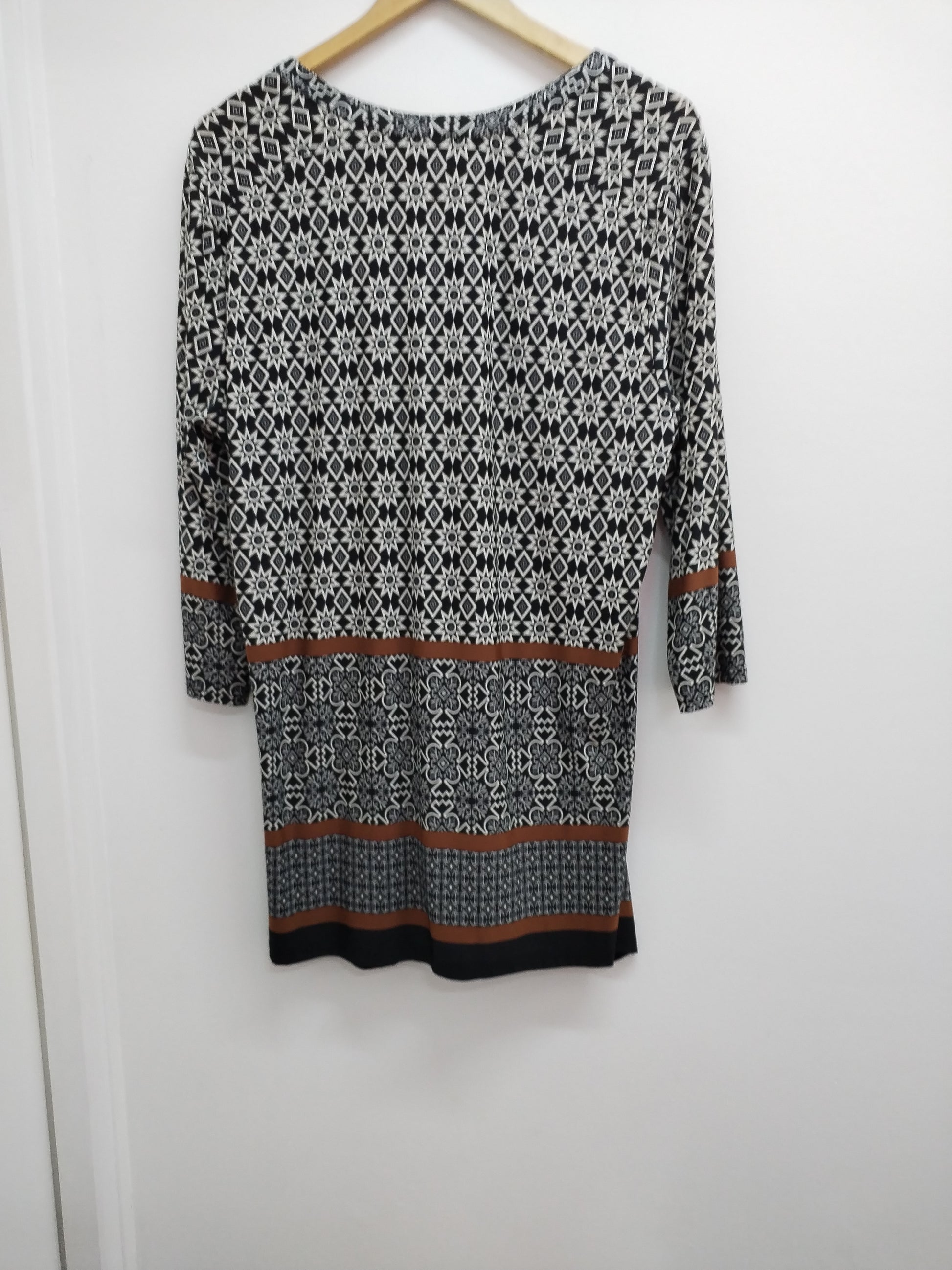 Tunique longues manches 3/4 noire, blanche et marron à motifs Taille XL