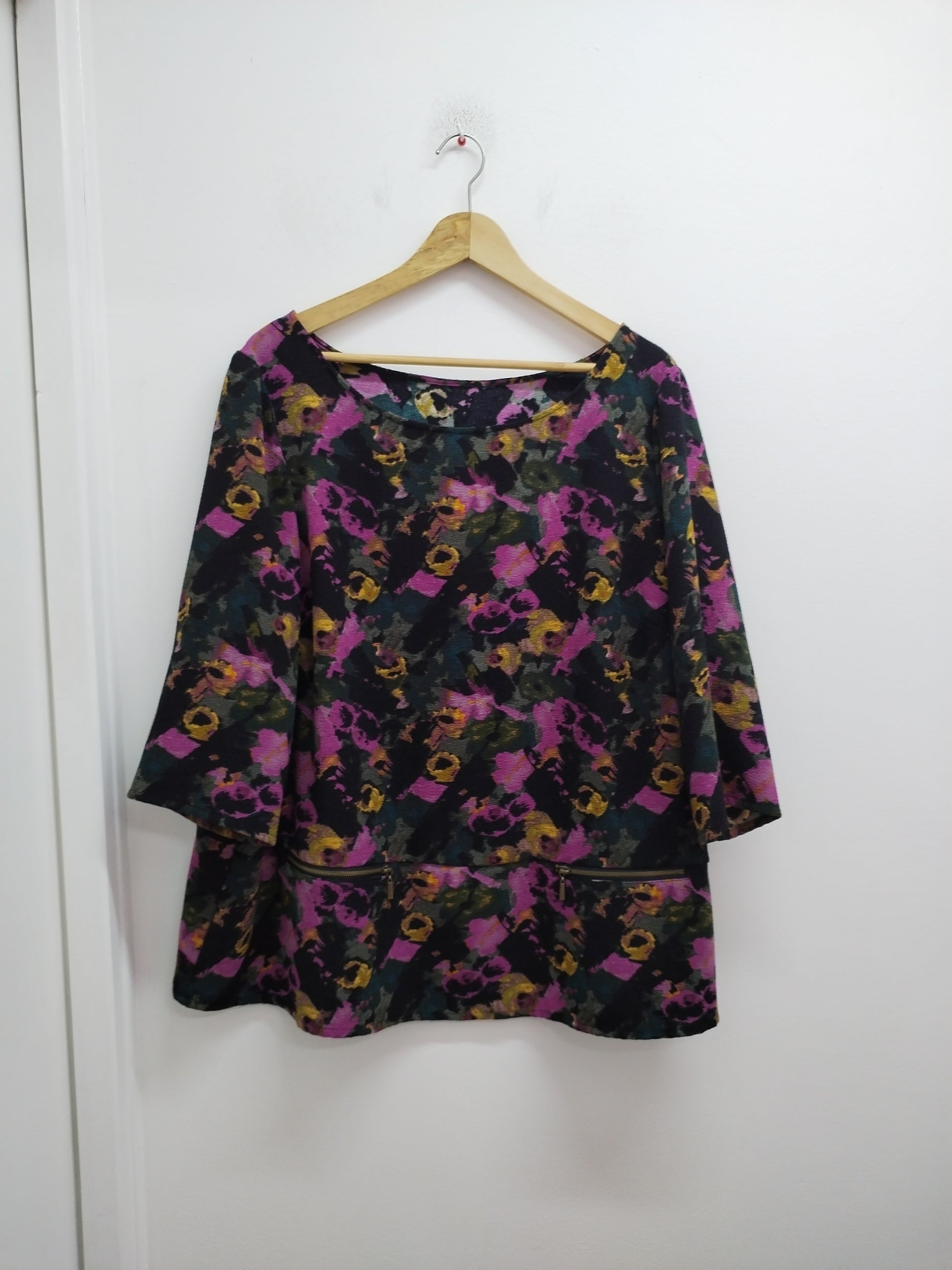 Tunique manches 3/4 noire fleurie Taille 2XL