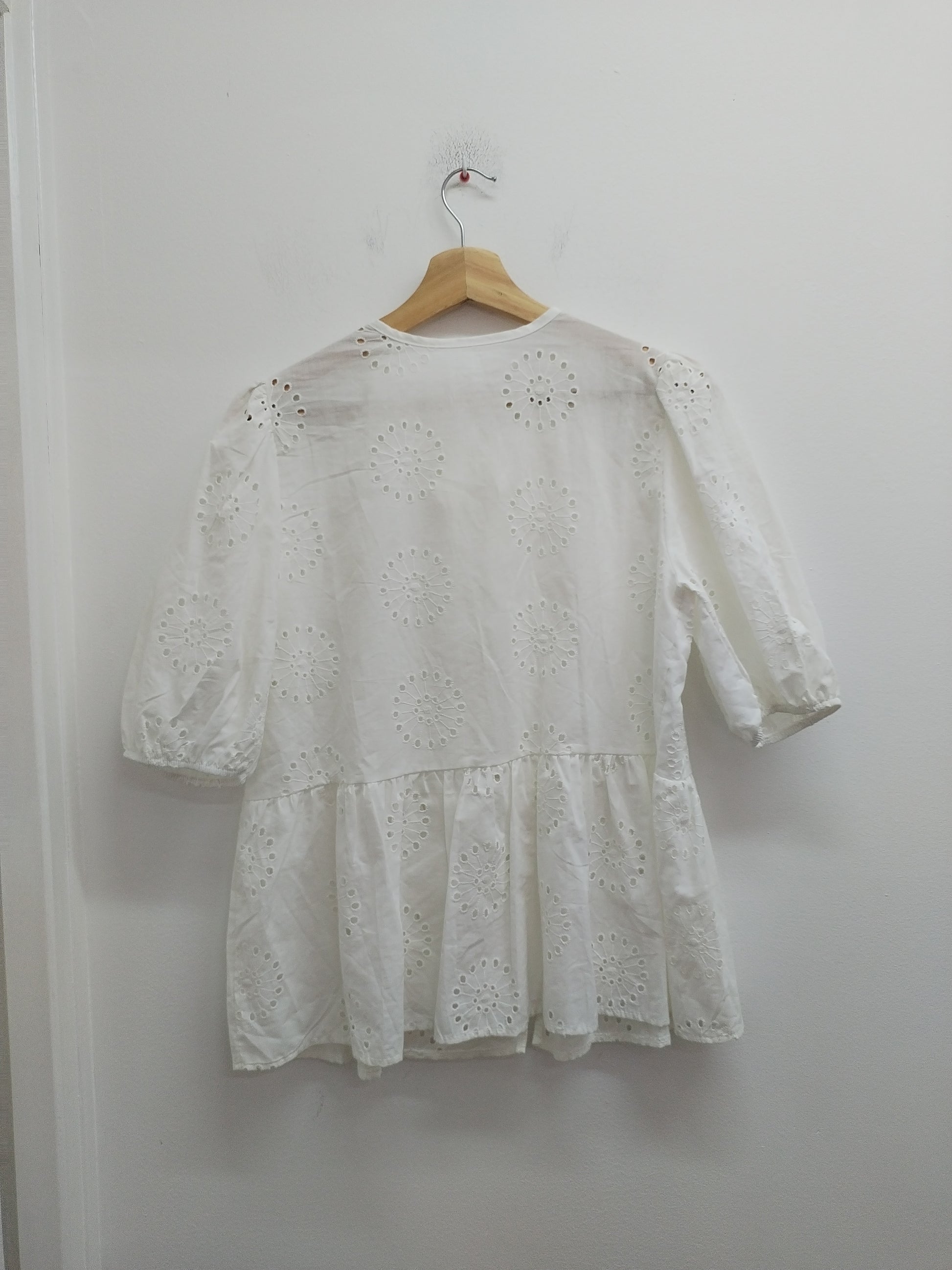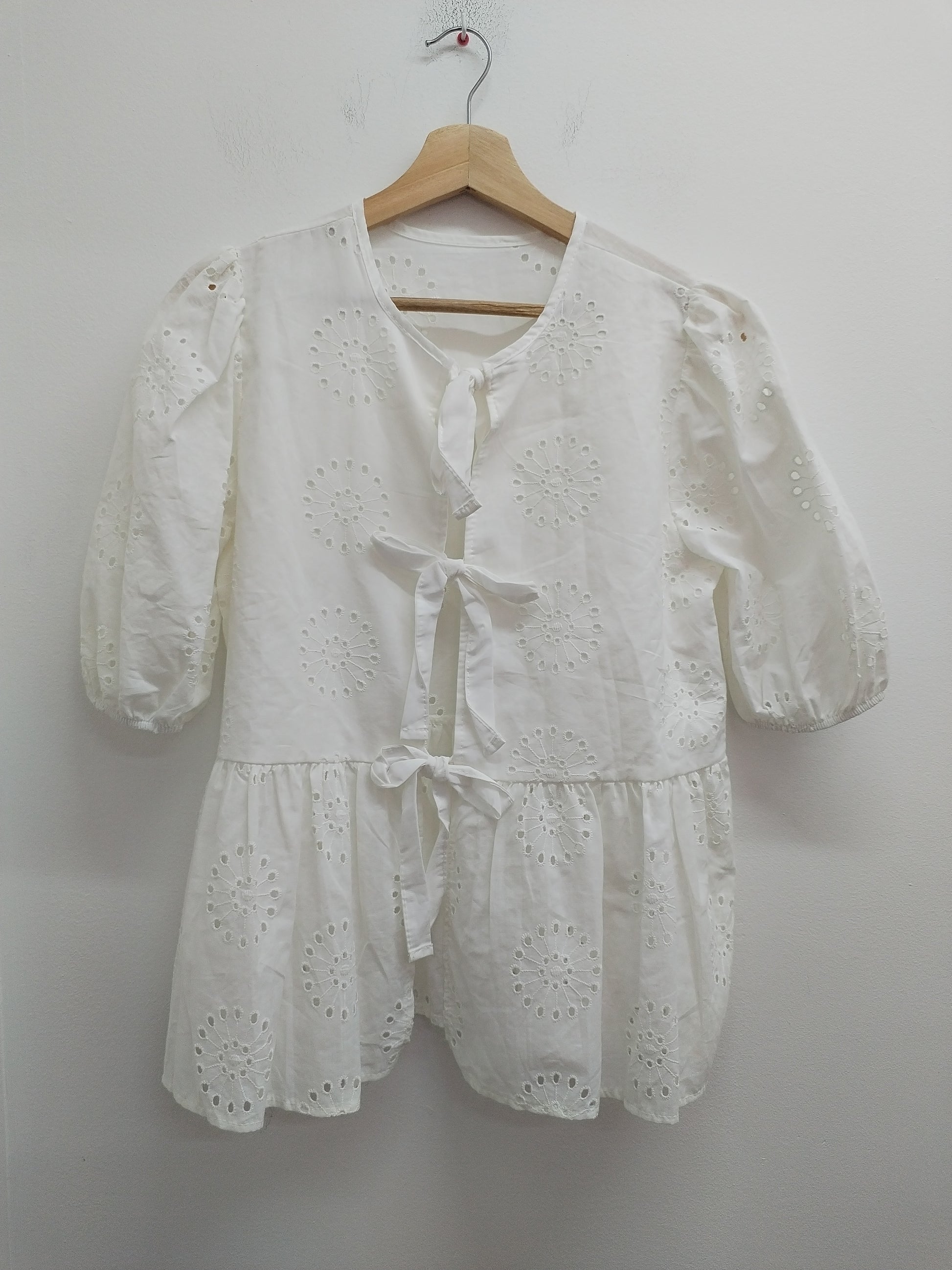 Tunique manches courtes ajourées blanche à nouer Taille M