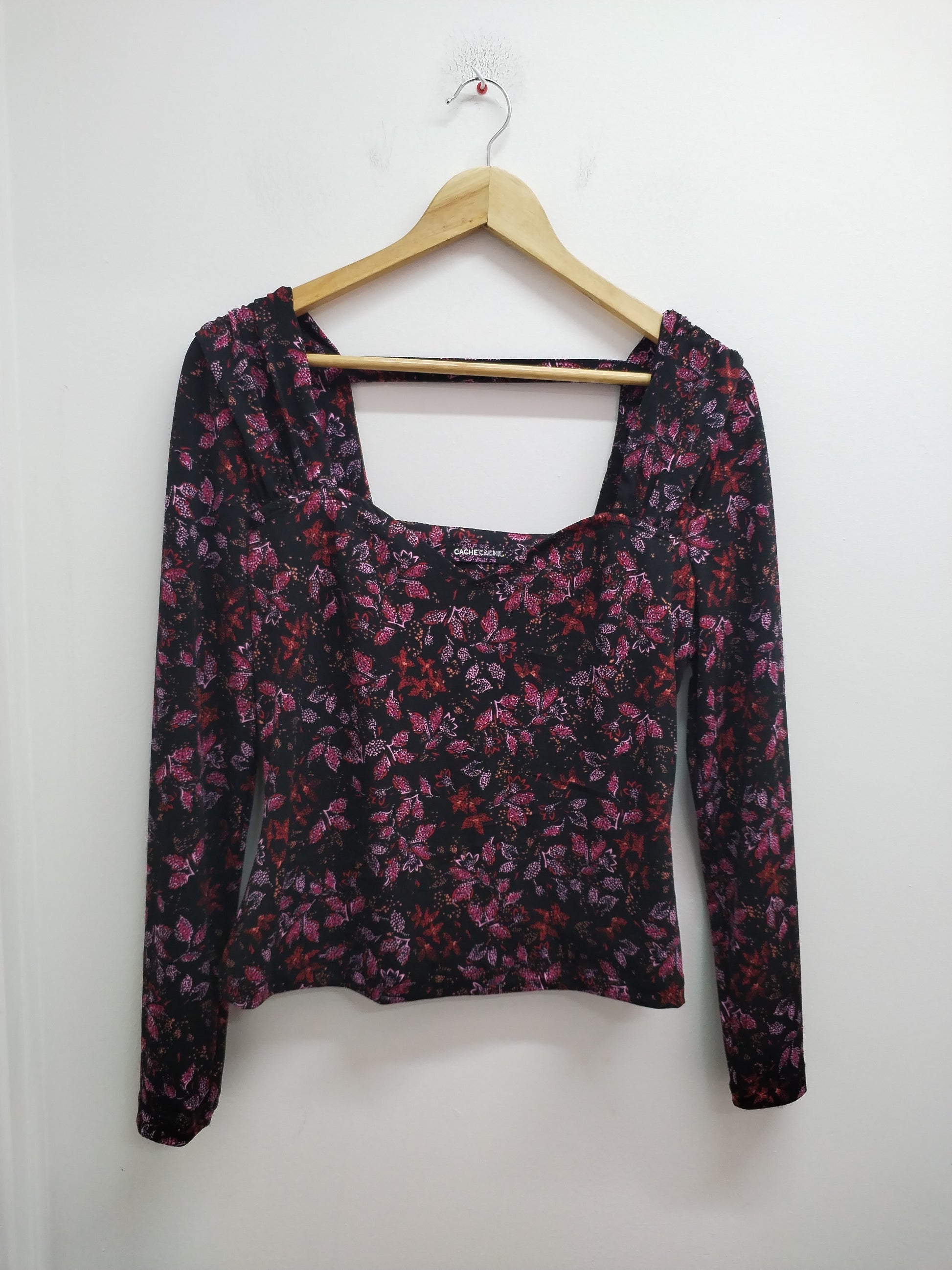 Tunique manches longues Cache-Cache noire fleurie Taille M